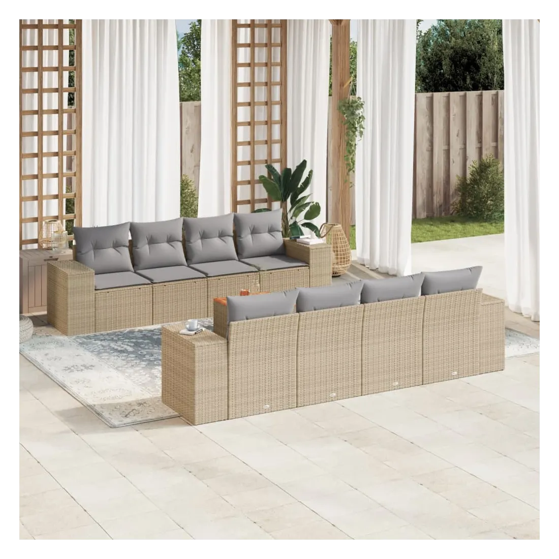 Cet ensemble de canapés de jardin est le complément parfait de votre arrière-cour, terrasse ou patio, offrant un espace confortable et accueillant pour discuter avec la famille et les amis ou simplement se détendre et profiter de l'extérieur. Matériau durable : la résine tressée, également connue sous le nom de poly rotin, est un matériau synthétique solide et nécessitant peu d'entretien qui ressemble au rotin naturel. Il est léger, facile à nettoyer et couramment utilisé pour les meubles d'extérieur en raison de sa durabilité et de ses propriétés de résistance aux intempéries. Fonction de rangement avec sac résistant à l'eau : chaque siège de jardin dispose d'un espace de rangement sous l'assise, complété par un sac résistant à l'eau pour ranger les coussins, les jouets et d'autres objets. Les sacs intérieurs sont dotés d'un couvercle et peuvent être solidement fixés aux sièges à l'aide de bandes auto-agrippantes pour plus de stabilité. Dessus stable et facile à nettoyer : cette table de jardin a un dessus en bois d'acacia robuste, durable et facile à nettoyer avec un chiffon humide. Expérience d'assise confortable : ce mobilier d'extérieur, doté de coussins épais, offre une expérience d'assise confortable. Conception modulaire : cet ensemble de meubles d'extérieur a une conception modulaire, ce qui le rend complètement flexible et facile à déplacer, afin que vous puissiez créer un agencement de meubles d'extérieur personnalisé. Bon à savoir :Pour que vos meubles d'extérieur restent beaux, nous vous recommandons de les protéger avec une housse imperméable.