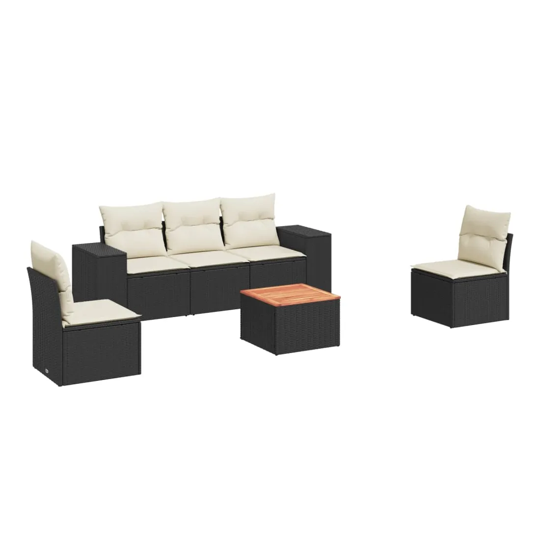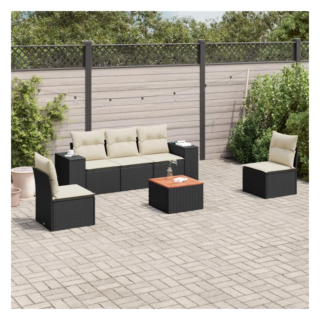 Cet ensemble de canapés de jardin est le complément parfait de votre arrière-cour, terrasse ou patio, offrant un espace confortable et accueillant pour discuter avec la famille et les amis ou simplement se détendre et profiter de l'extérieur. Matériau durable : la résine tressée, également connue sous le nom de poly rotin, est un matériau synthétique solide et nécessitant peu d'entretien qui ressemble au rotin naturel. Il est léger, facile à nettoyer et couramment utilisé pour les meubles d'extérieur en raison de sa durabilité et de ses propriétés de résistance aux intempéries. Fonction de rangement avec sac résistant à l'eau : chaque siège de jardin dispose d'un espace de rangement sous l'assise, complété par un sac résistant à l'eau pour ranger les coussins, les jouets et d'autres objets. Les sacs intérieurs sont dotés d'un couvercle et peuvent être solidement fixés aux sièges à l'aide de bandes auto-agrippantes pour plus de stabilité. Dessus stable et facile à nettoyer : cette table de jardin a un dessus en bois d'acacia robuste, durable et facile à nettoyer avec un chiffon humide. Expérience d'assise confortable : ce mobilier d'extérieur, doté de coussins épais, offre une expérience d'assise confortable. Conception modulaire : cet ensemble de meubles d'extérieur a une conception modulaire, ce qui le rend complètement flexible et facile à déplacer, afin que vous puissiez créer un agencement de meubles d'extérieur personnalisé. Bon à savoir :Pour que vos meubles d'extérieur restent beaux, nous vous recommandons de les protéger avec une housse imperméable.