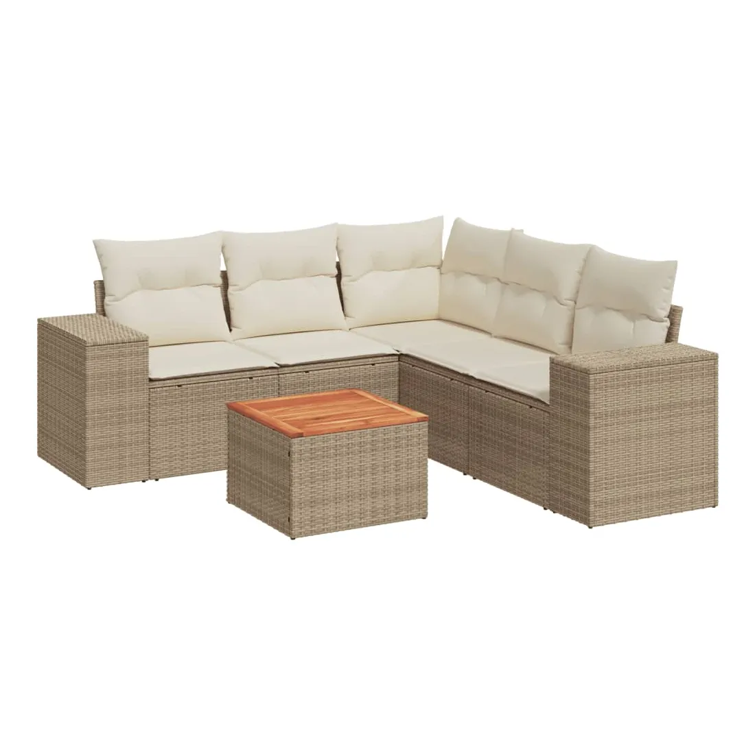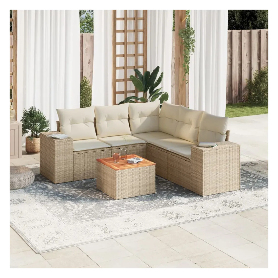 Cet ensemble de canapés de jardin est le complément parfait de votre arrière-cour, terrasse ou patio, offrant un espace confortable et accueillant pour discuter avec la famille et les amis ou simplement se détendre et profiter de l'extérieur. Matériau durable : la résine tressée, également connue sous le nom de poly rotin, est un matériau synthétique solide et nécessitant peu d'entretien qui ressemble au rotin naturel. Il est léger, facile à nettoyer et couramment utilisé pour les meubles d'extérieur en raison de sa durabilité et de ses propriétés de résistance aux intempéries. Fonction de rangement avec sac résistant à l'eau : chaque siège de jardin dispose d'un espace de rangement sous l'assise, complété par un sac résistant à l'eau pour ranger les coussins, les jouets et d'autres objets. Les sacs intérieurs sont dotés d'un couvercle et peuvent être solidement fixés aux sièges à l'aide de bandes auto-agrippantes pour plus de stabilité. Dessus stable et facile à nettoyer : cette table de jardin a un dessus en bois d'acacia robuste, durable et facile à nettoyer avec un chiffon humide. Expérience d'assise confortable : ce mobilier d'extérieur, doté de coussins épais, offre une expérience d'assise confortable. Conception modulaire : cet ensemble de meubles d'extérieur a une conception modulaire, ce qui le rend complètement flexible et facile à déplacer, afin que vous puissiez créer un agencement de meubles d'extérieur personnalisé. Bon à savoir :Pour que vos meubles d'extérieur restent beaux, nous vous recommandons de les protéger avec une housse imperméable.