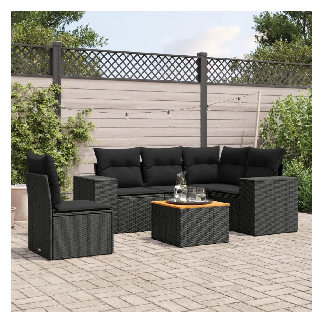 Salon de jardin 6 pcs avec coussins noir résine tressée