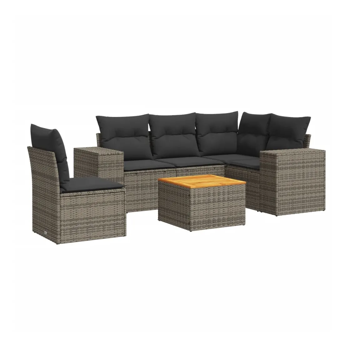 Salon de jardin 6 pcs avec coussins gris résine tressée