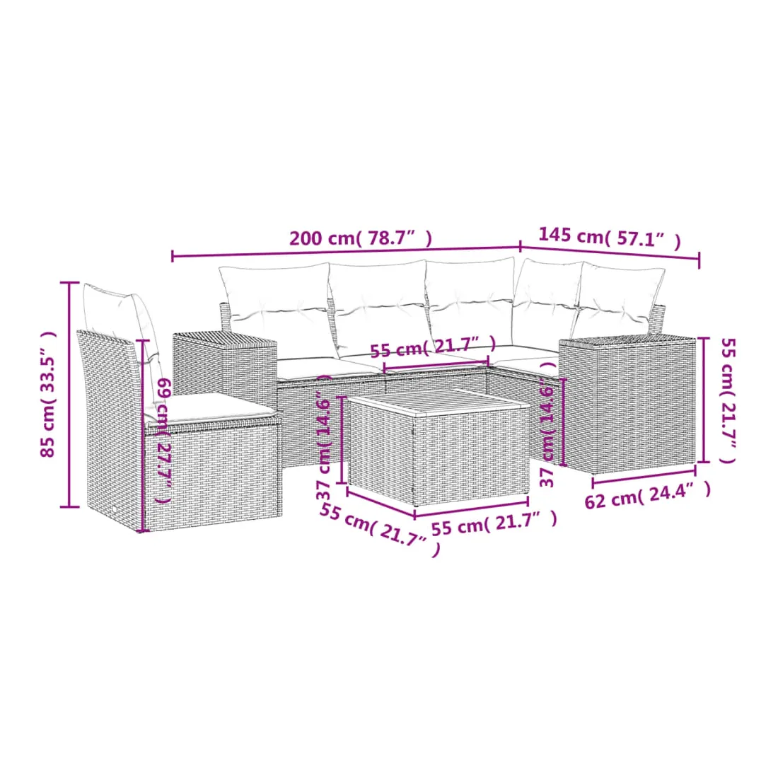 • Dimensions : 55 x 55 x 37 cm (L x l x H)