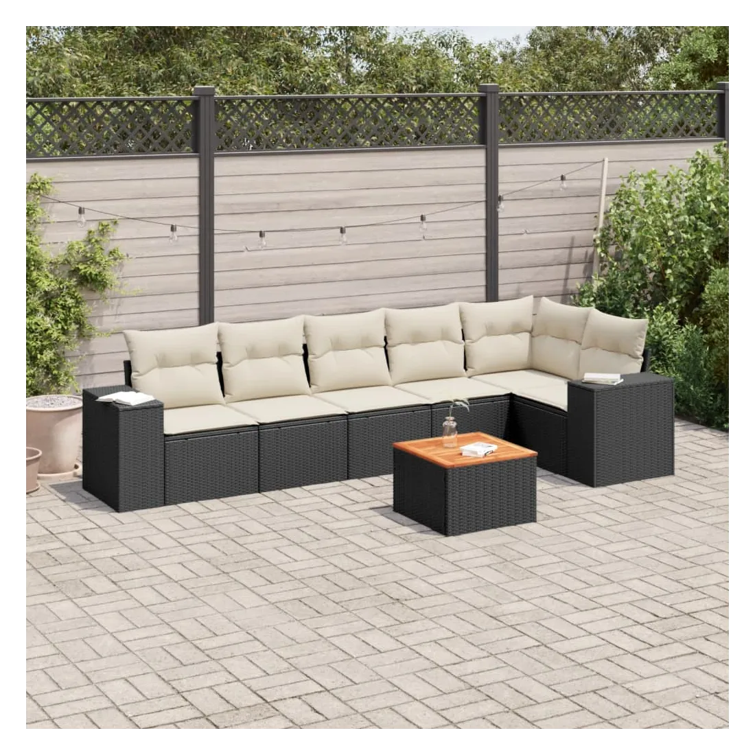 Cet ensemble de canapés de jardin est le complément parfait de votre arrière-cour, terrasse ou patio, offrant un espace confortable et accueillant pour discuter avec la famille et les amis ou simplement se détendre et profiter de l'extérieur. Matériau durable : la résine tressée, également connue sous le nom de poly rotin, est un matériau synthétique solide et nécessitant peu d'entretien qui ressemble au rotin naturel. Il est léger, facile à nettoyer et couramment utilisé pour les meubles d'extérieur en raison de sa durabilité et de ses propriétés de résistance aux intempéries. Fonction de rangement avec sac résistant à l'eau : chaque siège de jardin dispose d'un espace de rangement sous l'assise, complété par un sac résistant à l'eau pour ranger les coussins, les jouets et d'autres objets. Les sacs intérieurs sont dotés d'un couvercle et peuvent être solidement fixés aux sièges à l'aide de bandes auto-agrippantes pour plus de stabilité. Dessus stable et facile à nettoyer : cette table de jardin a un dessus en bois d'acacia robuste, durable et facile à nettoyer avec un chiffon humide. Expérience d'assise confortable : ce mobilier d'extérieur, doté de coussins épais, offre une expérience d'assise confortable. Conception modulaire : cet ensemble de meubles d'extérieur a une conception modulaire, ce qui le rend complètement flexible et facile à déplacer, afin que vous puissiez créer un agencement de meubles d'extérieur personnalisé. Bon à savoir :Pour que vos meubles d'extérieur restent beaux, nous vous recommandons de les protéger avec une housse imperméable.