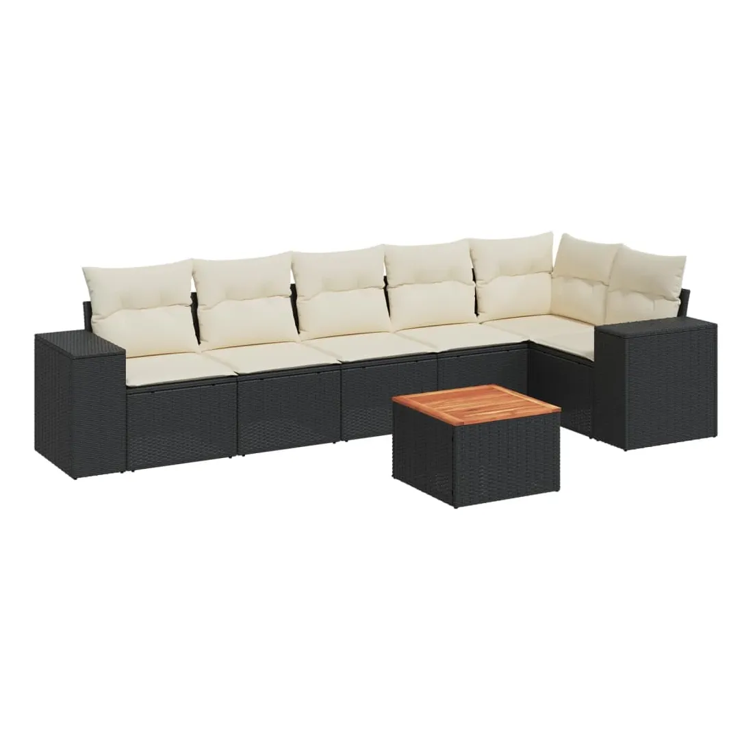 Salon de jardin 7 pcs avec coussins noir résine tressée