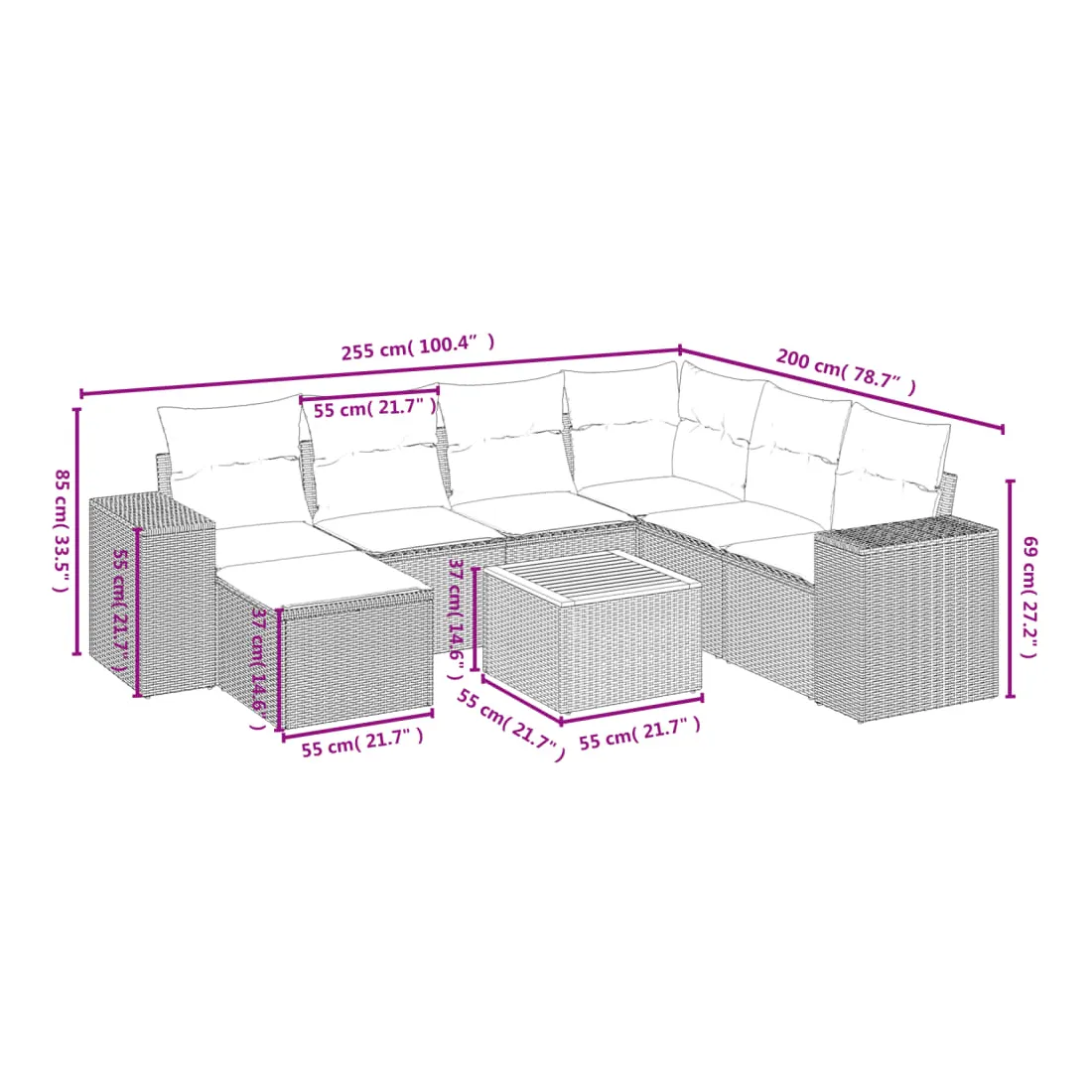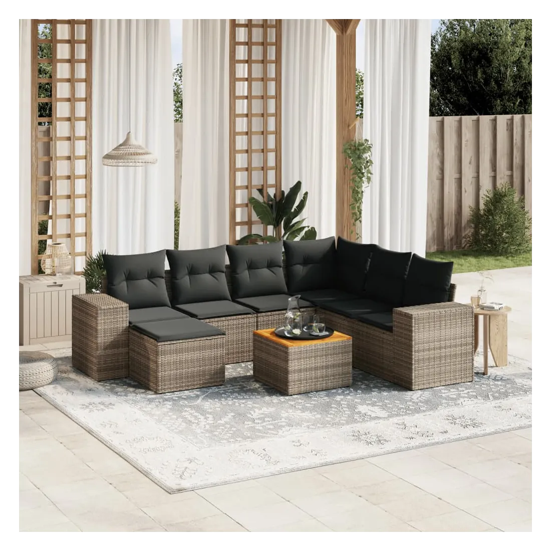 Cet ensemble de canapés de jardin est le complément parfait de votre arrière-cour, terrasse ou patio, offrant un espace confortable et accueillant pour discuter avec la famille et les amis ou simplement se détendre et profiter de l'extérieur. Matériau durable : la résine tressée, également connue sous le nom de poly rotin, est un matériau synthétique solide et nécessitant peu d'entretien qui ressemble au rotin naturel. Il est léger, facile à nettoyer et couramment utilisé pour les meubles d'extérieur en raison de sa durabilité et de ses propriétés de résistance aux intempéries.Dessus stable et facile à nettoyer : cette table de jardin a un dessus en bois d'acacia robuste, durable et facile à nettoyer avec un chiffon humide. Fonction de rangement avec sac résistant à l'eau : chaque siège de jardin dispose d'un espace de rangement sous l'assise, complété par un sac résistant à l'eau pour ranger les coussins, les jouets et d'autres objets. Les sacs intérieurs sont dotés d'un couvercle et peuvent être solidement fixés aux sièges à l'aide de bandes auto-agrippantes pour plus de stabilité.Expérience d'assise confortable : ce mobilier d'extérieur, doté de coussins épais, offre une expérience d'assise confortable.Conception modulaire : cet ensemble de meubles d'extérieur a une conception modulaire, ce qui le rend complètement flexible et facile à déplacer, afin que vous puissiez créer un agencement de meubles d'extérieur personnalisé. Bon à savoir :Pour que vos meubles d'extérieur restent beaux, nous vous recommandons de les protéger avec une housse imperméable.