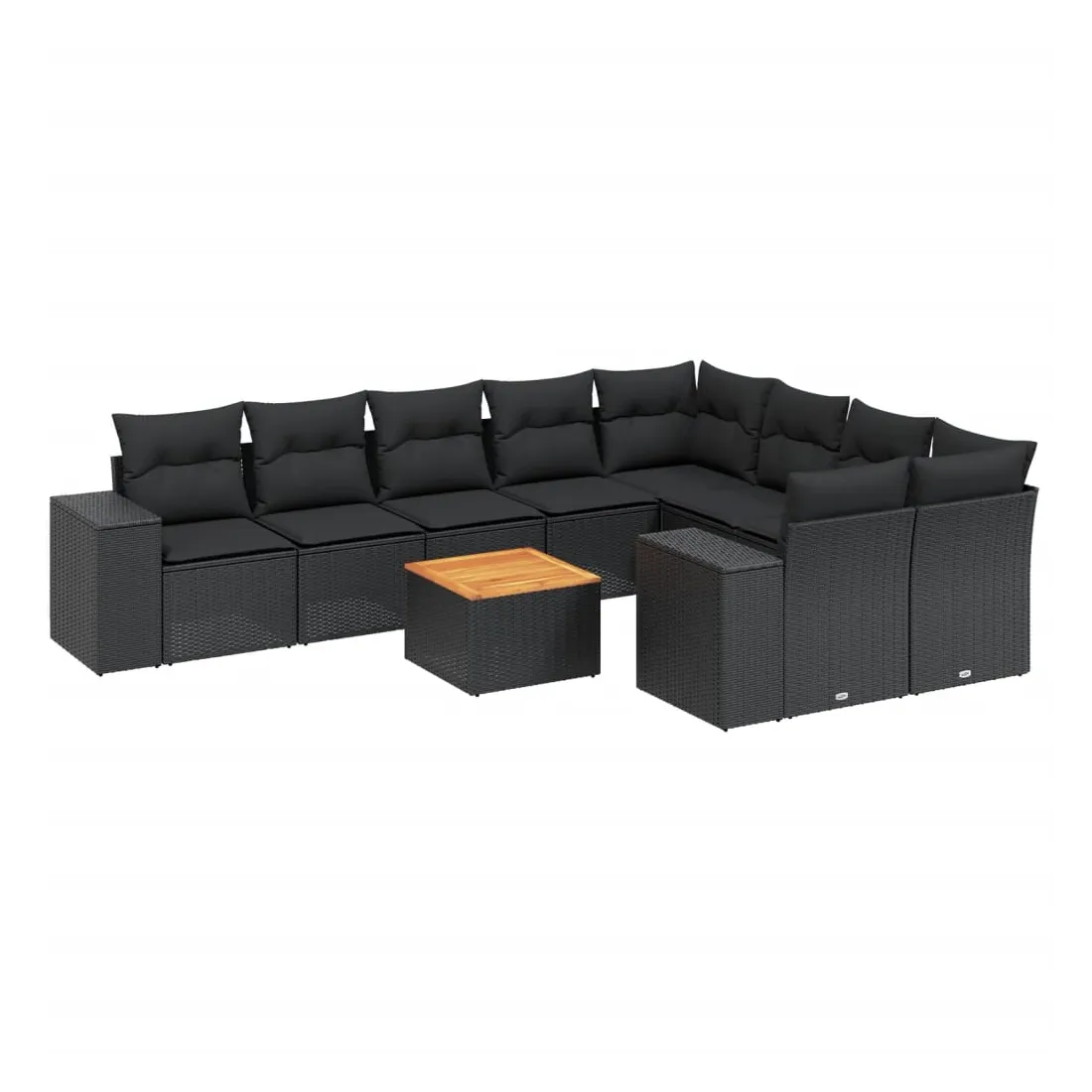 Salon de jardin 10 pcs avec coussins noir résine tressée