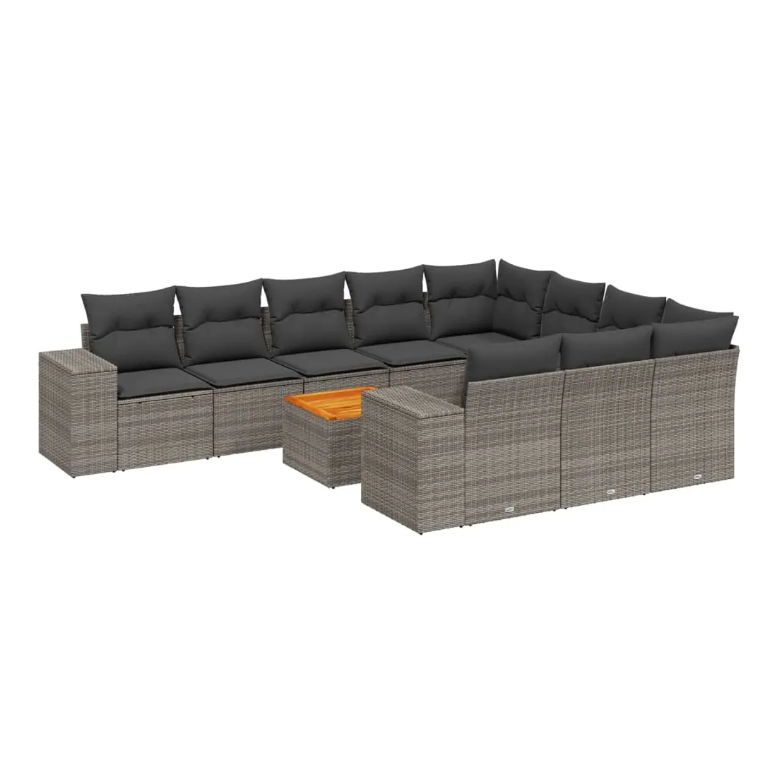 Salon de jardin 11 pcs avec coussins gris résine tressée