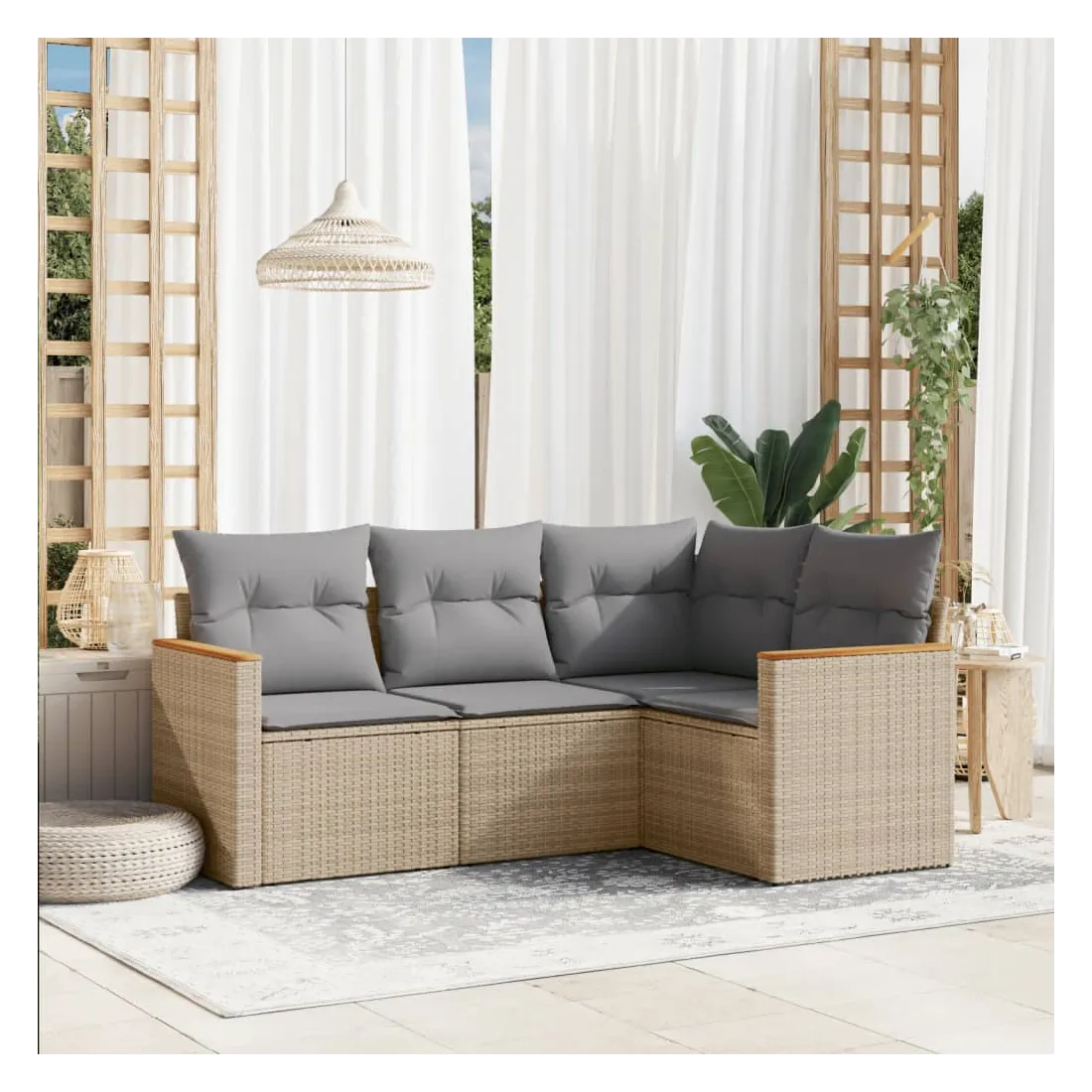 Cet ensemble de canapés de jardin est le complément parfait de votre arrière-cour, terrasse ou patio, offrant un espace confortable et accueillant pour discuter avec la famille et les amis ou simplement se détendre et profiter de l'extérieur. Matériau durable : la résine tressée, également connue sous le nom de poly rotin, est un matériau synthétique solide et nécessitant peu d'entretien qui ressemble au rotin naturel. Il est léger, facile à nettoyer et couramment utilisé pour les meubles d'extérieur en raison de sa durabilité et de ses propriétés de résistance aux intempéries.Fonction de rangement avec sac résistant à l'eau : le mobilier de jardin dispose d'un espace de rangement sous l'assise, complété par un sac résistant à l'eau pour ranger coussins, jouets et autres objets. Le sac intérieur peut être solidement fixé au mobilier d'extérieur grâce à des attaches auto-agrippantes pour plus de stabilité.Housse amovible et lavable : ces coussins de siège sont dotés de housses amovibles pour un lavage et un entretien faciles.Conception modulaire : cet ensemble de meubles d'extérieur a une conception modulaire, ce qui le rend complètement flexible et facile à déplacer, afin que vous puissiez créer un agencement de meubles d'extérieur personnalisé. Bon à savoir :Pour que vos meubles d'extérieur restent beaux, nous vous recommandons de les protéger avec une housse imperméable.