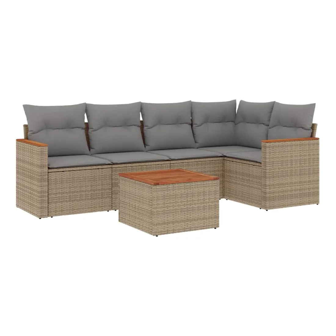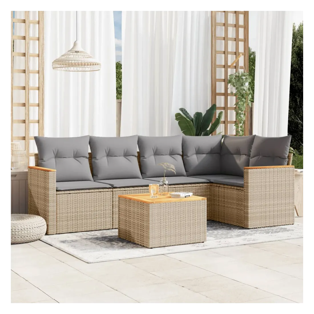 Salon de jardin avec coussins 6 pcs beige résine tressée