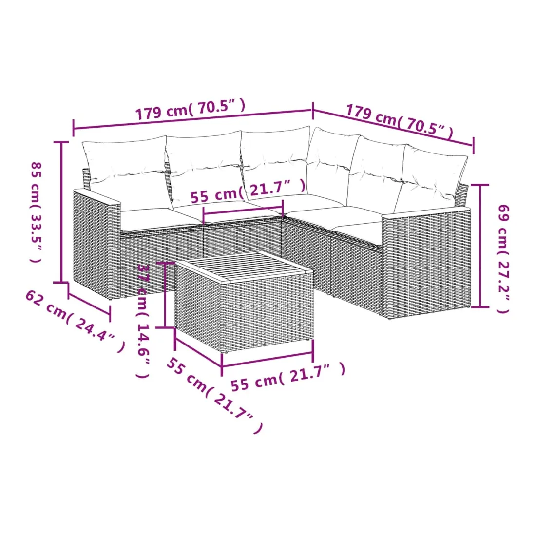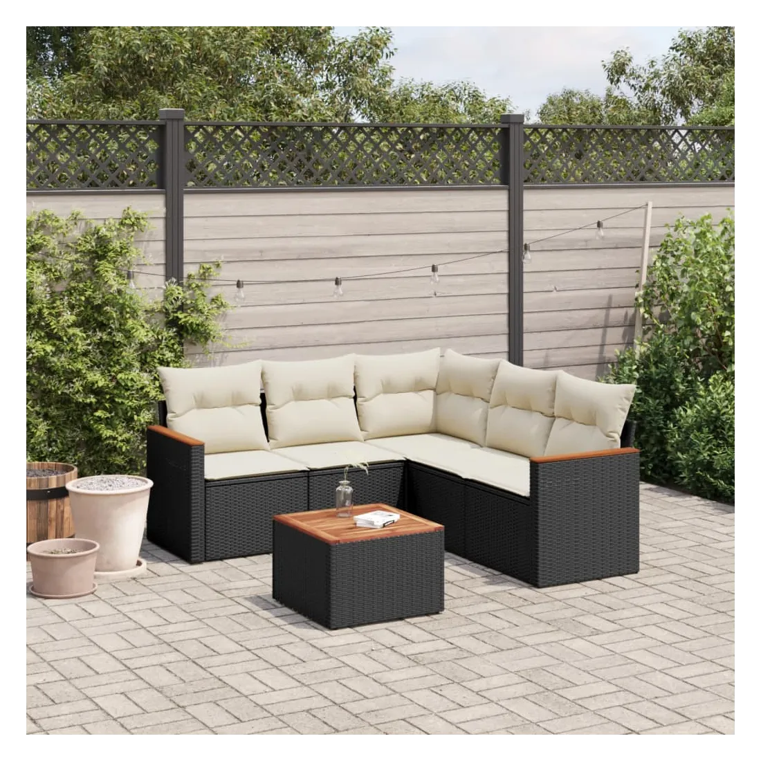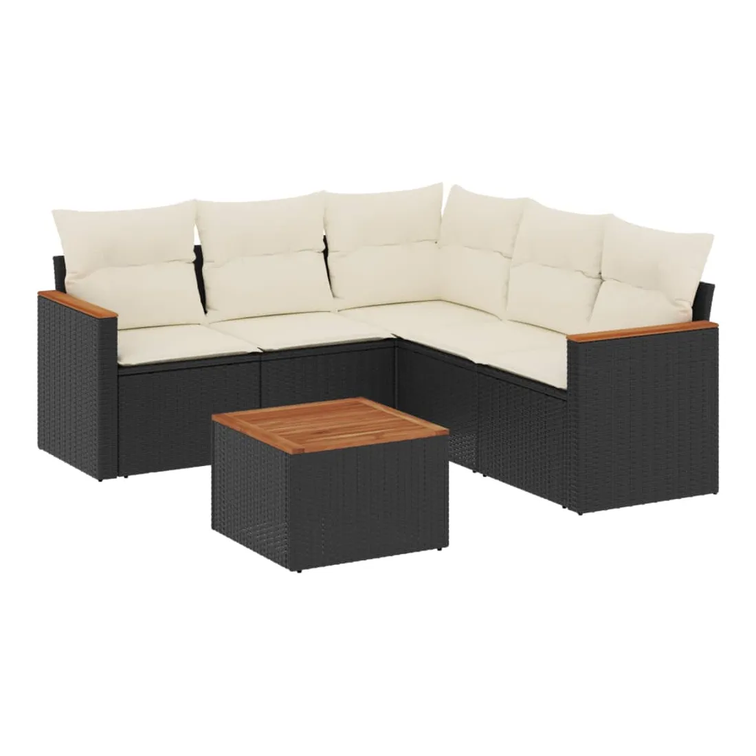 Salon de jardin 6 pcs avec coussins noir résine tressée