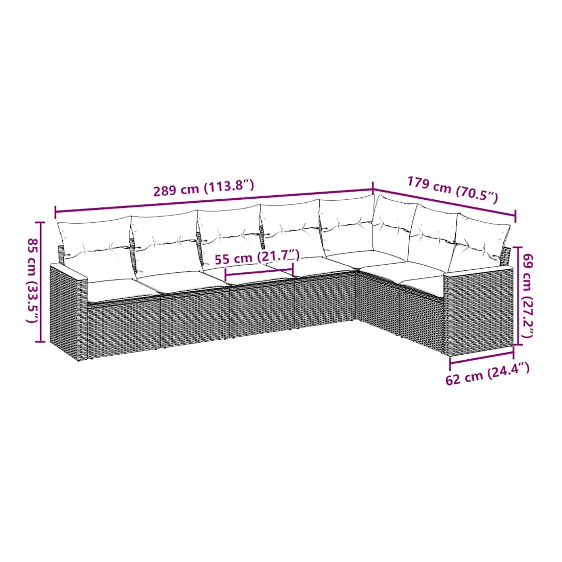 - 7 x coussin de siège avec housse amovible et lavable