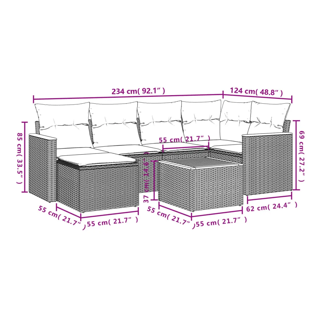 - Dimensions : 55 x 55 x 37 cm (L x l x H)