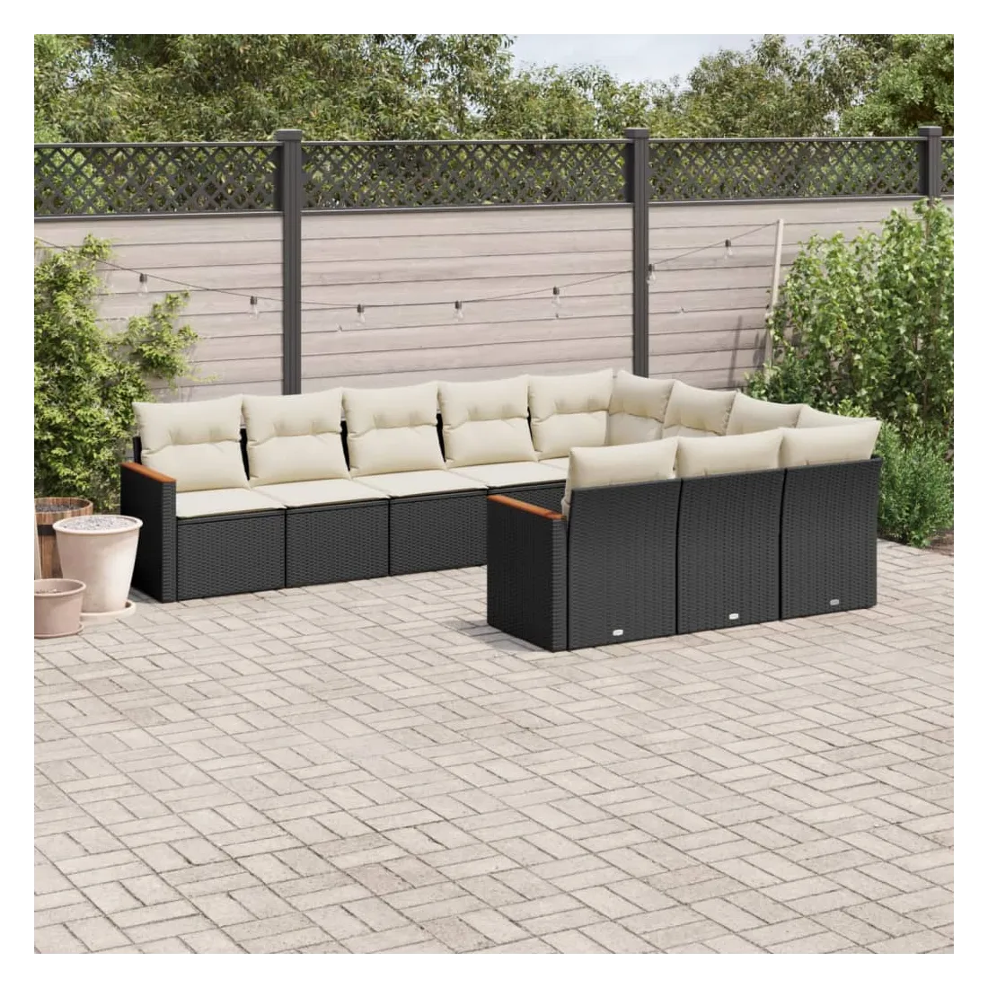 Salon de jardin 10 pcs avec coussins noir résine tressée