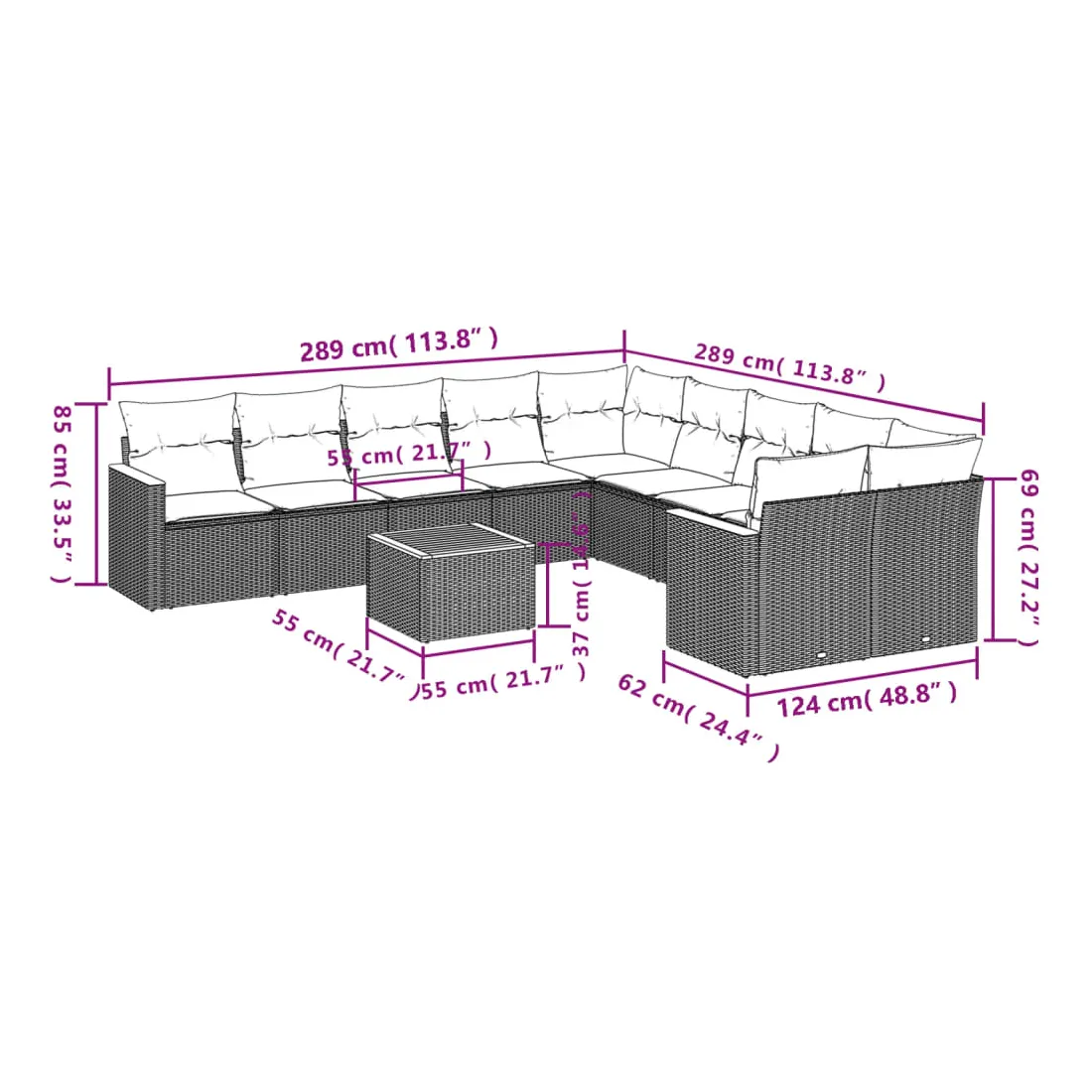 • Dimensions : 55 x 55 x 37 cm (L x l x H)