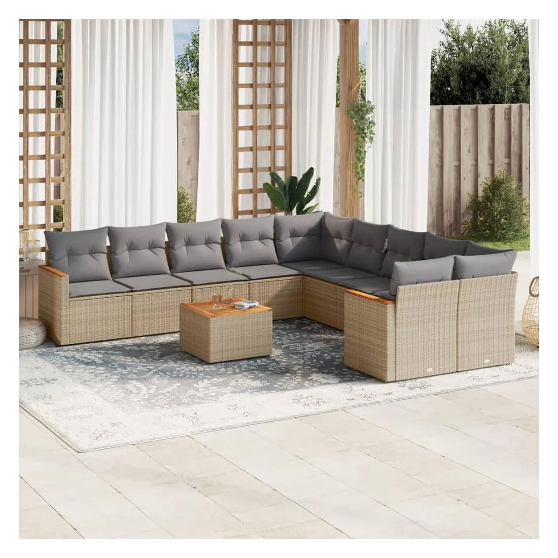 Salon de jardin 11 pcs avec coussins beige résine tressée