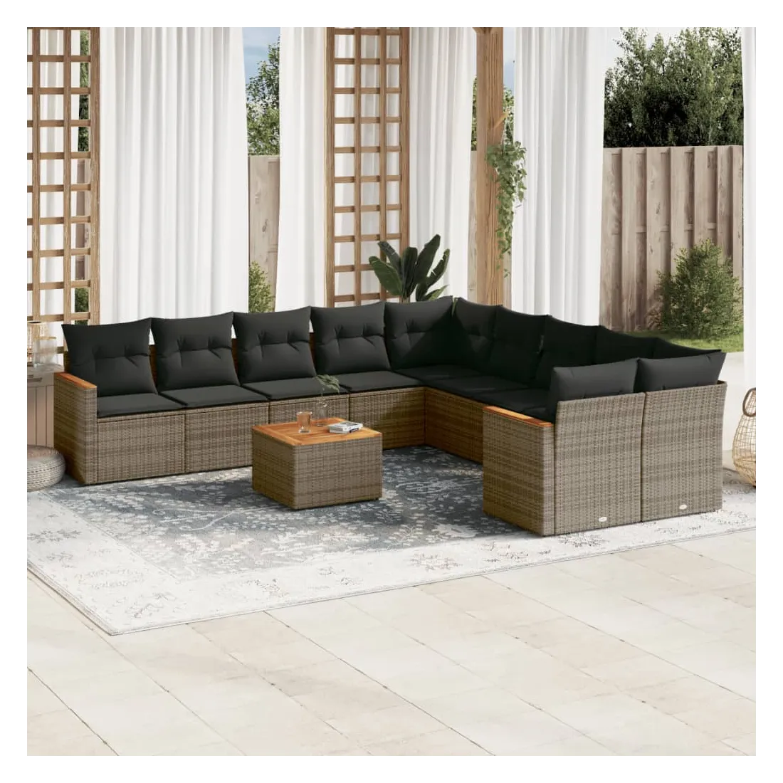 Cet ensemble de canapés de jardin est le complément parfait de votre arrière-cour, terrasse ou patio, offrant un espace confortable et accueillant pour discuter avec la famille et les amis ou simplement se détendre et profiter de l'extérieur. Matériau durable : la résine tressée, également connue sous le nom de poly rotin, est un matériau synthétique solide et nécessitant peu d'entretien qui ressemble au rotin naturel. Il est léger, facile à nettoyer et couramment utilisé pour les meubles d'extérieur en raison de sa durabilité et de ses propriétés de résistance aux intempéries.Fonction de rangement avec sac résistant à l'eau : le mobilier de jardin dispose d'un espace de rangement sous l'assise, complété par un sac résistant à l'eau pour ranger coussins, jouets et autres objets. Le sac intérieur peut être solidement fixé au mobilier d'extérieur grâce à des attaches auto-agrippantes pour plus de stabilité.Dessus stable et facile à nettoyer : cette table de jardin a un dessus en bois d'acacia robuste, durable et facile à nettoyer avec un chiffon humide.Housse amovible et lavable : ces coussins de siège sont dotés de housses amovibles pour un lavage et un entretien faciles.Conception modulaire : cet ensemble de meubles d'extérieur a une conception modulaire, ce qui le rend complètement flexible et facile à déplacer, afin que vous puissiez créer un agencement de meubles d'extérieur personnalisé. Bon à savoir :Pour que vos meubles d'extérieur restent beaux, nous vous recommandons de les protéger avec une housse imperméable.