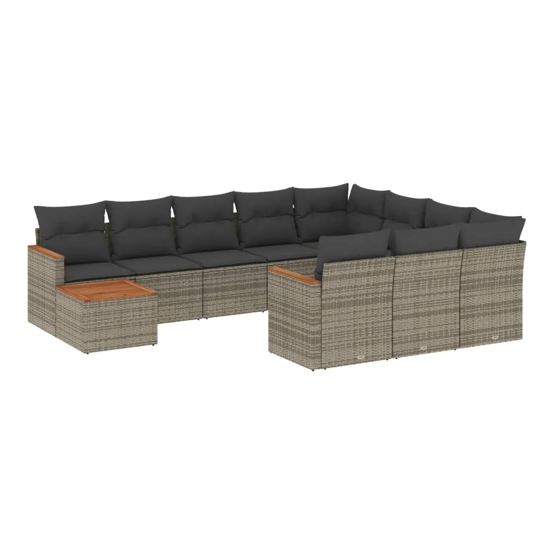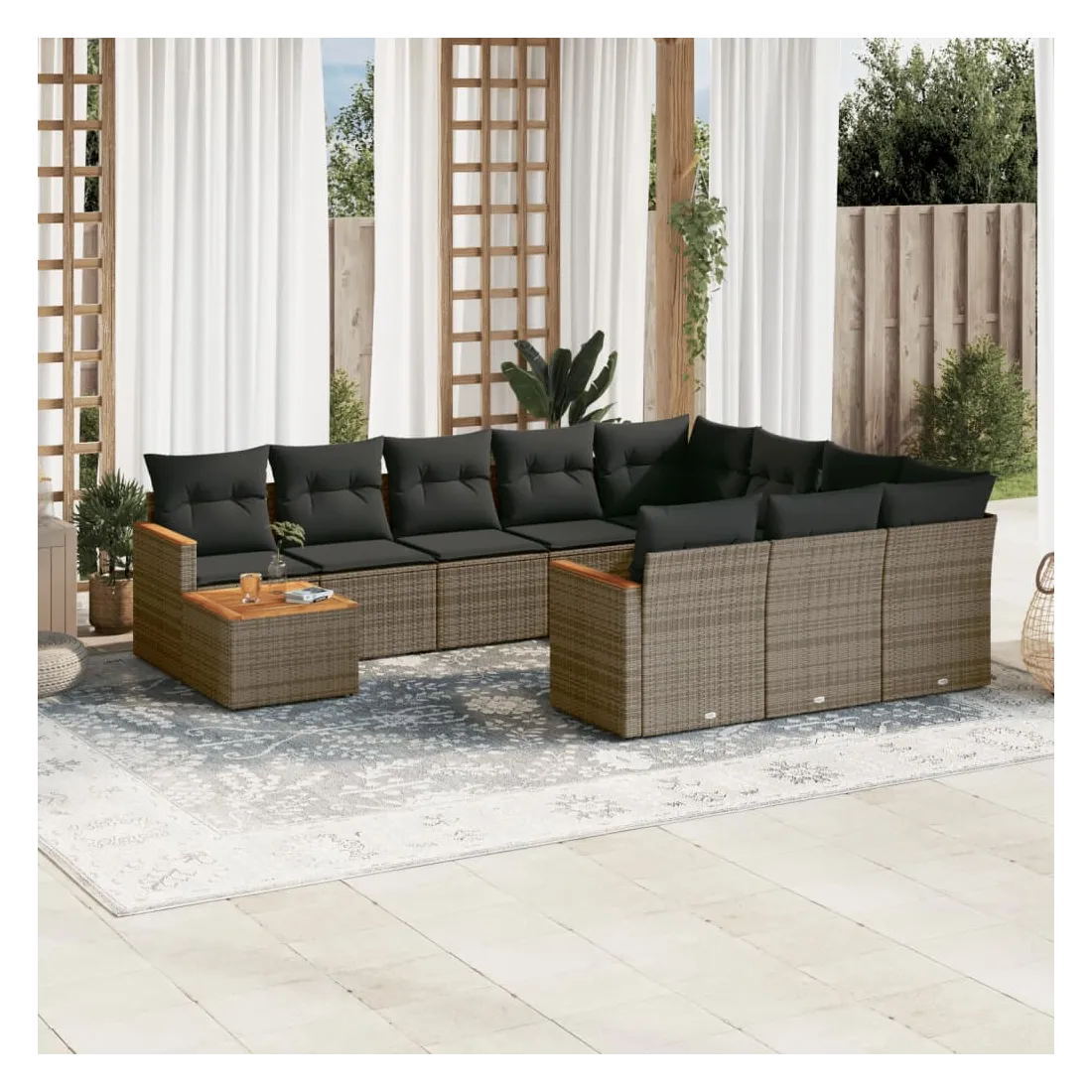Salon de jardin 11 pcs avec coussins gris résine tressée