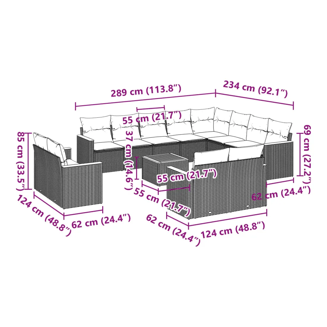 - Dimensions du coussin de dossier : 55 x 45 x 13 cm (L x l x é)