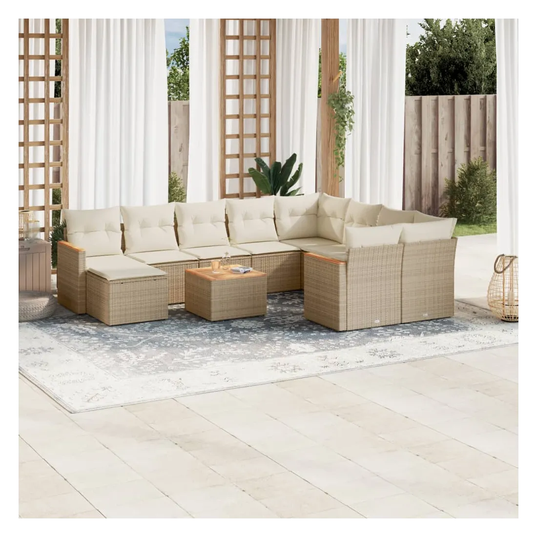 Cet ensemble de canapés de jardin est le complément parfait de votre arrière-cour, terrasse ou patio, offrant un espace confortable et accueillant pour discuter avec la famille et les amis ou simplement se détendre et profiter de l'extérieur. Matériau durable : la résine tressée, également connue sous le nom de poly rotin, est un matériau synthétique solide et nécessitant peu d'entretien qui ressemble au rotin naturel. Il est léger, facile à nettoyer et couramment utilisé pour les meubles d'extérieur en raison de sa durabilité et de ses propriétés de résistance aux intempéries.Fonction de rangement avec sac résistant à l'eau : le mobilier de jardin dispose d'un espace de rangement sous l'assise, complété par un sac résistant à l'eau pour ranger coussins, jouets et autres objets. Le sac intérieur peut être solidement fixé au mobilier d'extérieur grâce à des attaches auto-agrippantes pour plus de stabilité.Dessus stable et facile à nettoyer : cette table de jardin a un dessus en bois d'acacia robuste, durable et facile à nettoyer avec un chiffon humide.Housse amovible et lavable : ces coussins de siège sont dotés de housses amovibles pour un lavage et un entretien faciles.Conception modulaire : cet ensemble de meubles d'extérieur a une conception modulaire, ce qui le rend complètement flexible et facile à déplacer, afin que vous puissiez créer un agencement de meubles d'extérieur personnalisé. Bon à savoir :Pour que vos meubles d'extérieur restent beaux, nous vous recommandons de les protéger avec une housse imperméable.