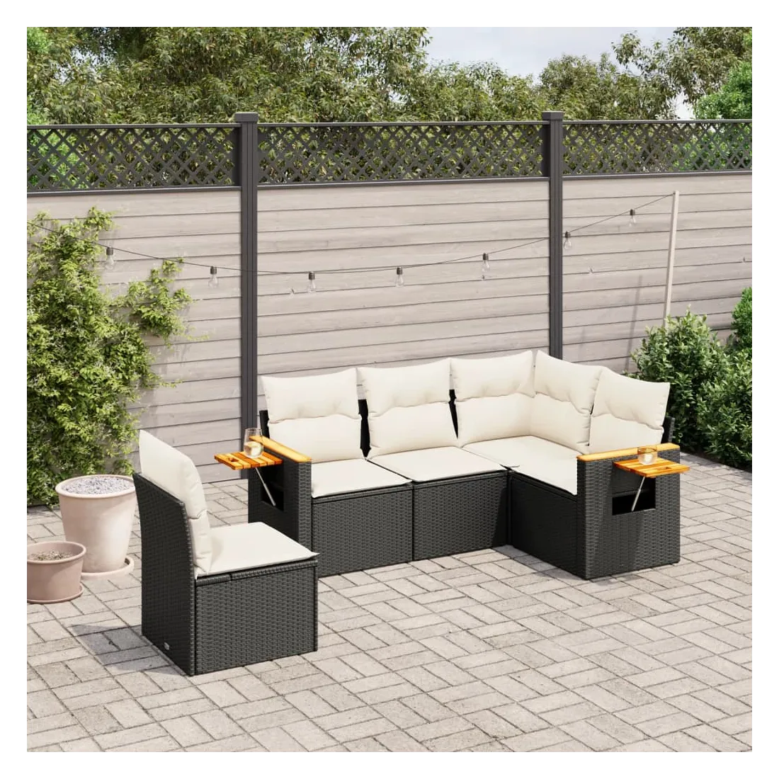 Salon de jardin 5 pcs avec coussins noir résine tressée