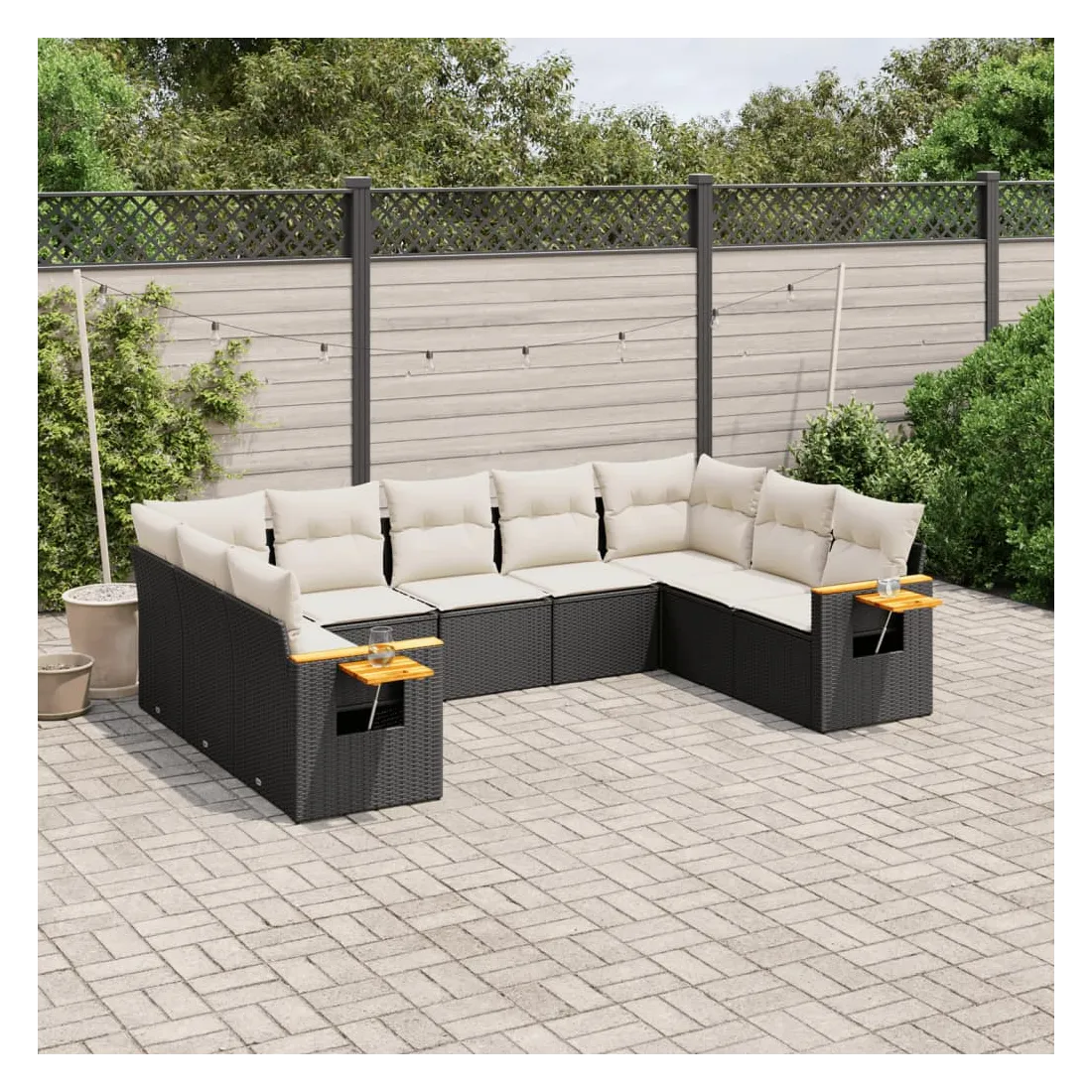 Cet ensemble de canapés de jardin est le complément parfait de votre arrière-cour, terrasse ou patio, offrant un espace confortable et accueillant pour discuter avec la famille et les amis ou simplement se détendre et profiter de l'extérieur. Matériau durable : la résine tressée, également connue sous le nom de poly rotin, est un matériau synthétique solide et nécessitant peu d'entretien qui ressemble au rotin naturel. Il est léger, facile à nettoyer et couramment utilisé pour les meubles d'extérieur en raison de sa durabilité et de ses propriétés de résistance aux intempéries.Fonction de rangement avec sac résistant à l'eau : le mobilier de jardin dispose d'un espace de rangement sous l'assise, complété par un sac résistant à l'eau pour ranger coussins, jouets et autres objets. Le sac intérieur peut être solidement fixé au mobilier d'extérieur grâce à des attaches auto-agrippantes pour plus de stabilité.Table d'appoint pratique : ce mobilier d'extérieur comprend une table d'appoint pliable avec un ressort à gaz sur les accoudoirs, offrant un endroit pratique pour garder vos essentiels à portée de main.Housse amovible et lavable : ces coussins de siège sont dotés de housses amovibles pour un lavage et un entretien faciles.Conception modulaire : cet ensemble de meubles d'extérieur a une conception modulaire, ce qui le rend complètement flexible et facile à déplacer, afin que vous puissiez créer un agencement de meubles d'extérieur personnalisé. Bon à savoir :Pour que vos meubles d'extérieur restent beaux, nous vous recommandons de les protéger avec une housse imperméable.