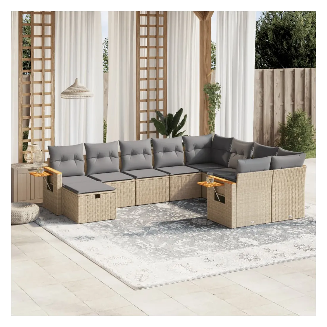 Salon de jardin avec coussins 10 pcs beige résine tressée