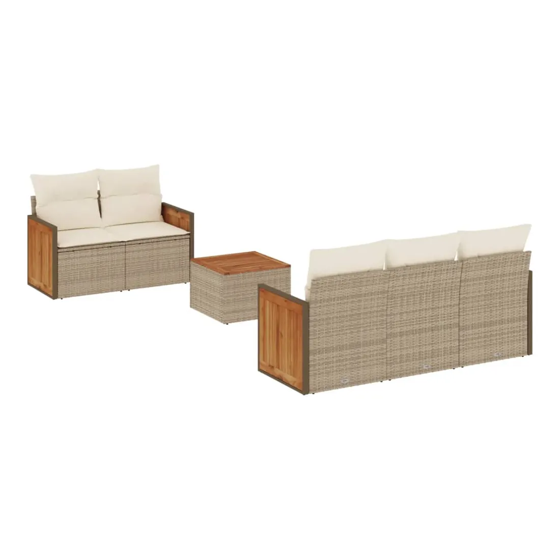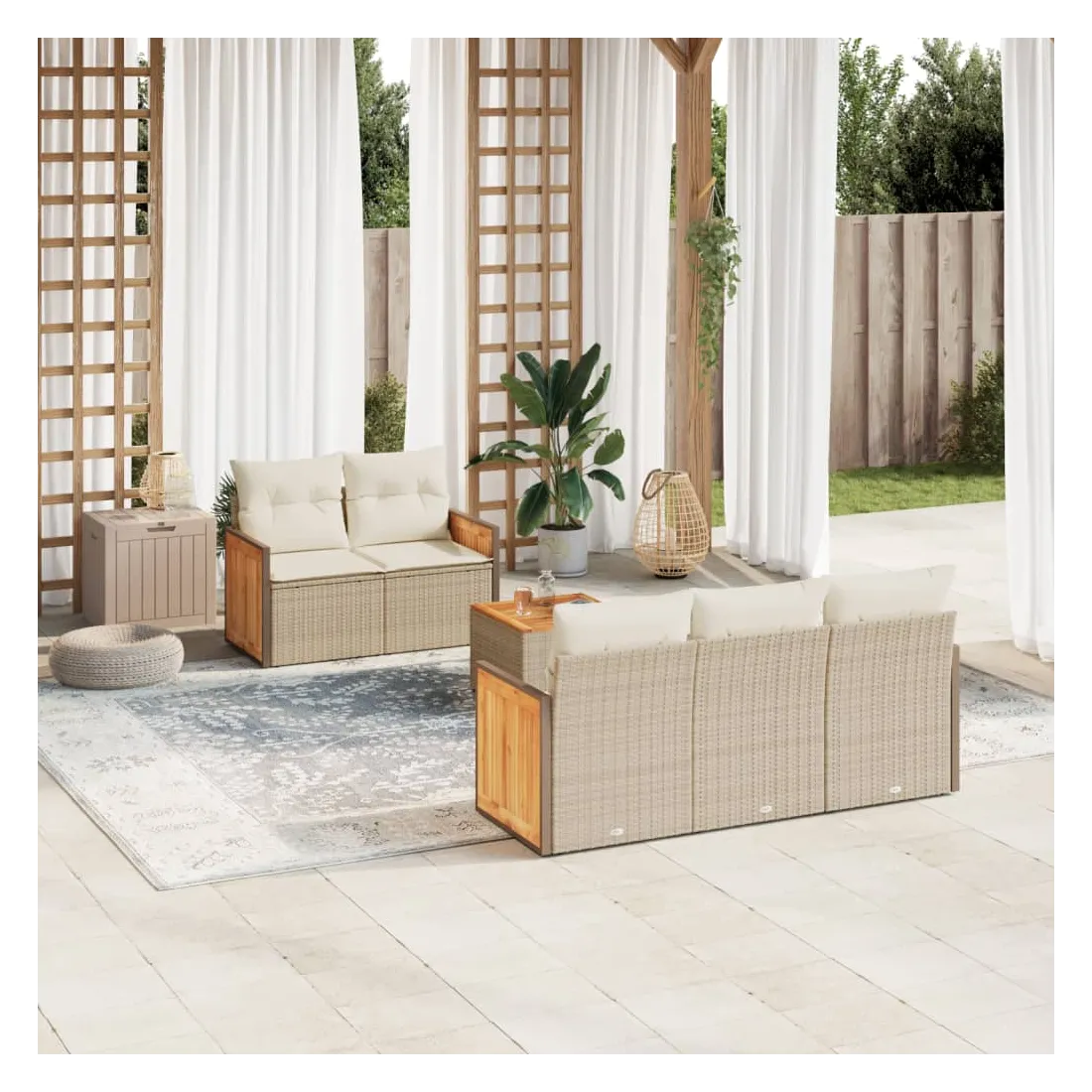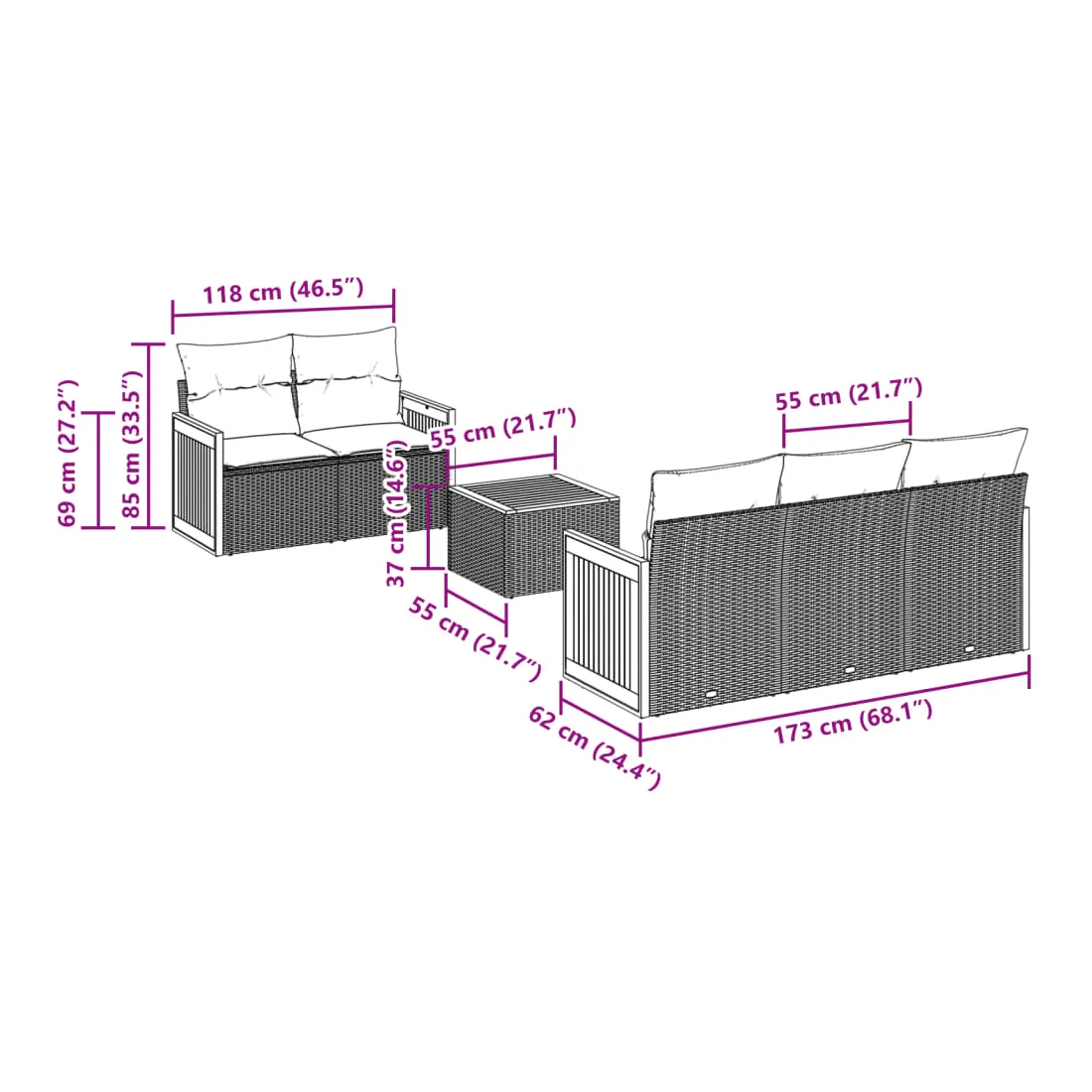 Cet ensemble de canapés de jardin est le complément parfait de votre arrière-cour, terrasse ou patio, offrant un espace confortable et accueillant pour discuter avec la famille et les amis ou simplement se détendre et profiter de l'extérieur. Matériau durable : la résine tressée, également connue sous le nom de poly rotin, est un matériau synthétique solide et nécessitant peu d'entretien qui ressemble au rotin naturel. Il est léger, facile à nettoyer et couramment utilisé pour les meubles d'extérieur en raison de sa durabilité et de ses propriétés de résistance aux intempéries.Fonction de rangement avec sac résistant à l'eau : le mobilier de jardin dispose d'un espace de rangement sous l'assise, complété par un sac résistant à l'eau pour ranger coussins, jouets et autres objets. Le sac intérieur peut être solidement fixé au mobilier d'extérieur grâce à des attaches auto-agrippantes pour plus de stabilité.Dessus stable et facile à nettoyer : cette table de jardin a un dessus en bois d'acacia robuste, durable et facile à nettoyer avec un chiffon humide.Housse amovible et lavable : ces coussins de siège sont dotés de housses amovibles pour un lavage et un entretien faciles.Conception modulaire : cet ensemble de meubles d'extérieur a une conception modulaire, ce qui le rend complètement flexible et facile à déplacer, afin que vous puissiez créer un agencement de meubles d'extérieur personnalisé. Bon à savoir :Pour que vos meubles d'extérieur restent beaux, nous vous recommandons de les protéger avec une housse imperméable.