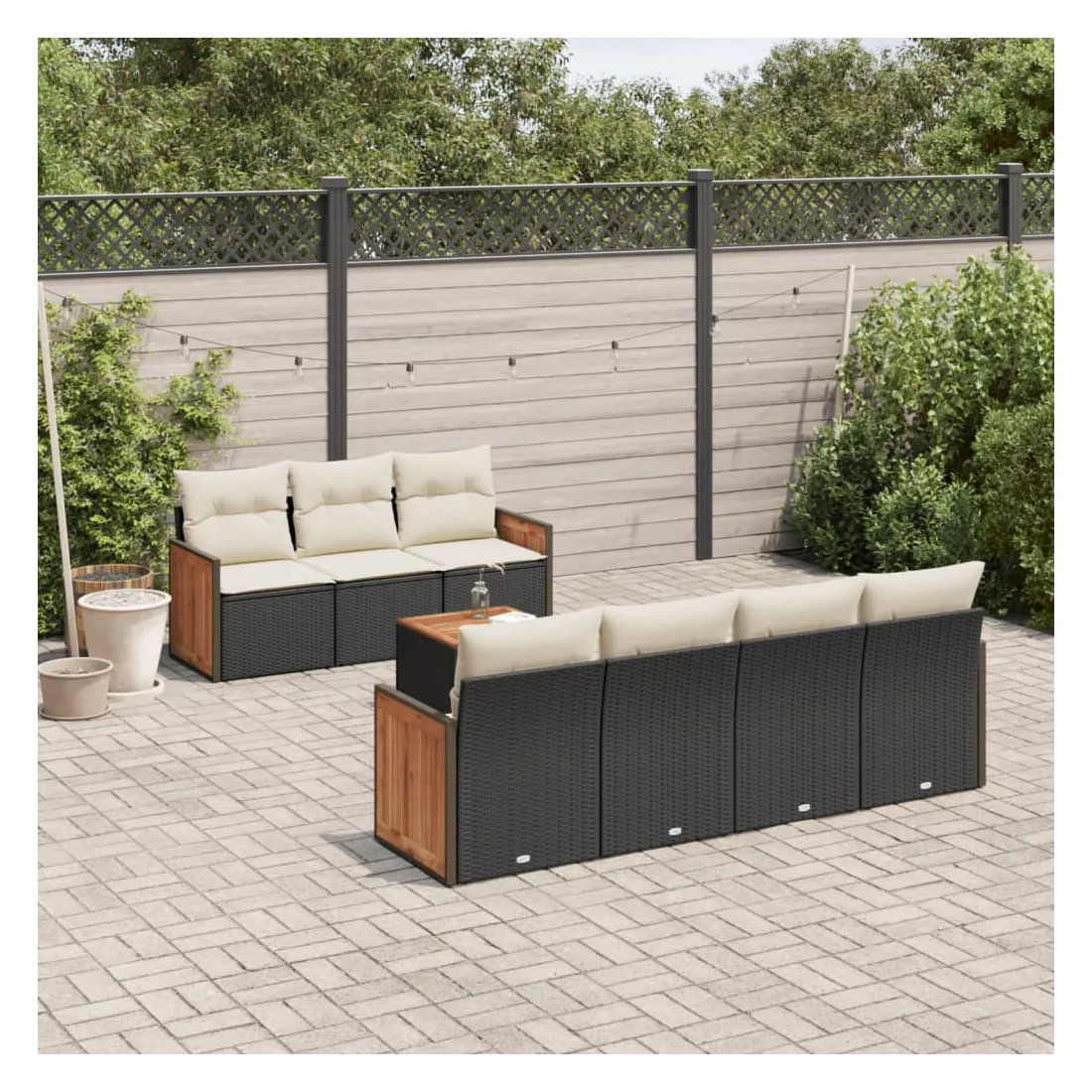 Cet ensemble de canapés de jardin est le complément parfait de votre arrière-cour, terrasse ou patio, offrant un espace confortable et accueillant pour discuter avec la famille et les amis ou simplement se détendre et profiter de l'extérieur. Matériau durable : la résine tressée, également connue sous le nom de poly rotin, est un matériau synthétique solide et nécessitant peu d'entretien qui ressemble au rotin naturel. Il est léger, facile à nettoyer et couramment utilisé pour les meubles d'extérieur en raison de sa durabilité et de ses propriétés de résistance aux intempéries.Fonction de rangement avec sac résistant à l'eau : le mobilier de jardin dispose d'un espace de rangement sous l'assise, complété par un sac résistant à l'eau pour ranger coussins, jouets et autres objets. Le sac intérieur peut être solidement fixé au mobilier d'extérieur grâce à des attaches auto-agrippantes pour plus de stabilité.Dessus stable et facile à nettoyer : cette table de jardin a un dessus en bois d'acacia robuste, durable et facile à nettoyer avec un chiffon humide.Housse amovible et lavable : ces coussins de siège sont dotés de housses amovibles pour un lavage et un entretien faciles.Conception modulaire : cet ensemble de meubles d'extérieur a une conception modulaire, ce qui le rend complètement flexible et facile à déplacer, afin que vous puissiez créer un agencement de meubles d'extérieur personnalisé. Bon à savoir :Pour que vos meubles d'extérieur restent beaux, nous vous recommandons de les protéger avec une housse imperméable.