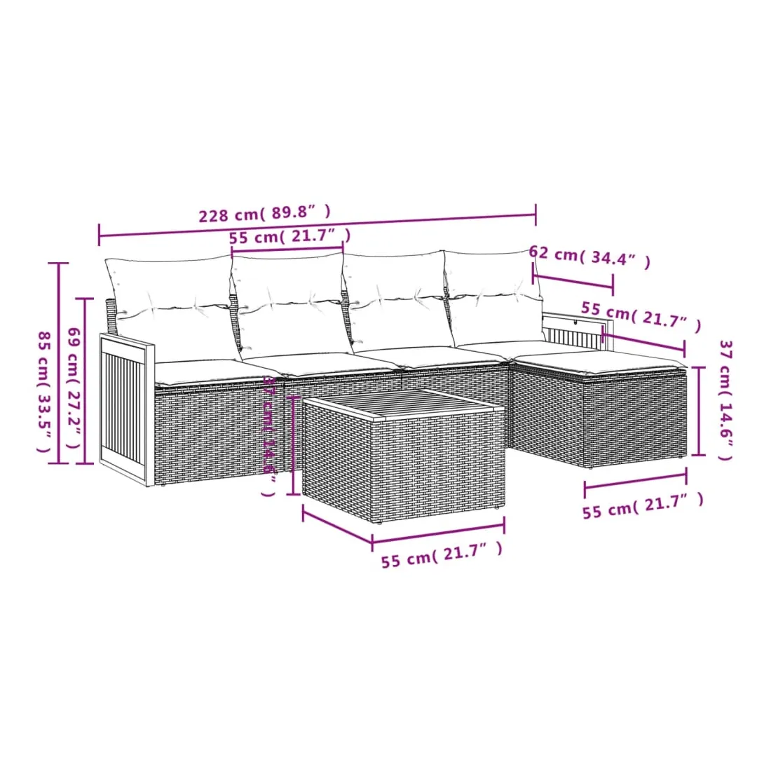 - Dimensions : 55 x 55 x 37 cm (L x l x H)