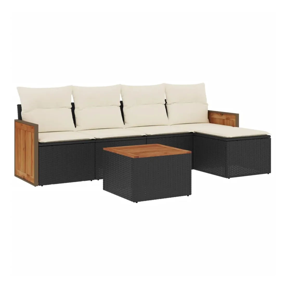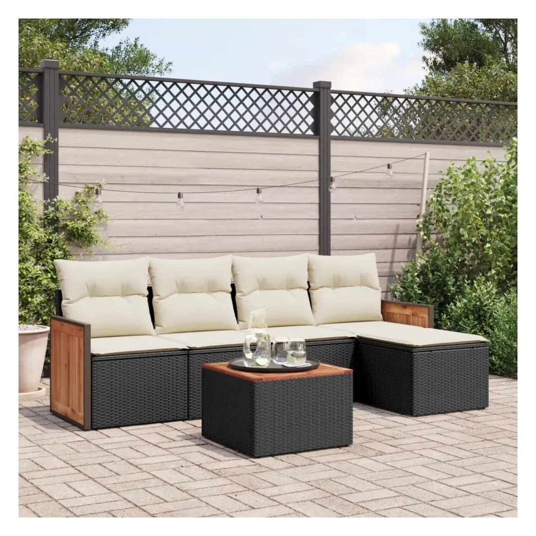 Cet ensemble de canapés de jardin est le complément parfait de votre arrière-cour, terrasse ou patio, offrant un espace confortable et accueillant pour discuter avec la famille et les amis ou simplement se détendre et profiter de l'extérieur. Matériau durable : la résine tressée, également connue sous le nom de poly rotin, est un matériau synthétique solide et nécessitant peu d'entretien qui ressemble au rotin naturel. Il est léger, facile à nettoyer et couramment utilisé pour les meubles d'extérieur en raison de sa durabilité et de ses propriétés de résistance aux intempéries.Fonction de rangement avec sac résistant à l'eau : le mobilier de jardin dispose d'un espace de rangement sous l'assise, complété par un sac résistant à l'eau pour ranger coussins, jouets et autres objets. Le sac intérieur peut être solidement fixé au mobilier d'extérieur grâce à des attaches auto-agrippantes pour plus de stabilité.Dessus stable et facile à nettoyer : cette table de jardin a un dessus en bois d'acacia robuste, durable et facile à nettoyer avec un chiffon humide.Housse amovible et lavable : ces coussins de siège sont dotés de housses amovibles pour un lavage et un entretien faciles.Conception modulaire : cet ensemble de meubles d'extérieur a une conception modulaire, ce qui le rend complètement flexible et facile à déplacer, afin que vous puissiez créer un agencement de meubles d'extérieur personnalisé. Bon à savoir :Pour que vos meubles d'extérieur restent beaux, nous vous recommandons de les protéger avec une housse imperméable.