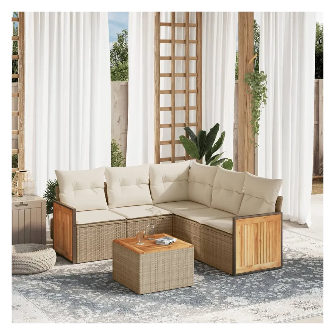 Salon de jardin avec coussins 6 pcs beige résine tressée