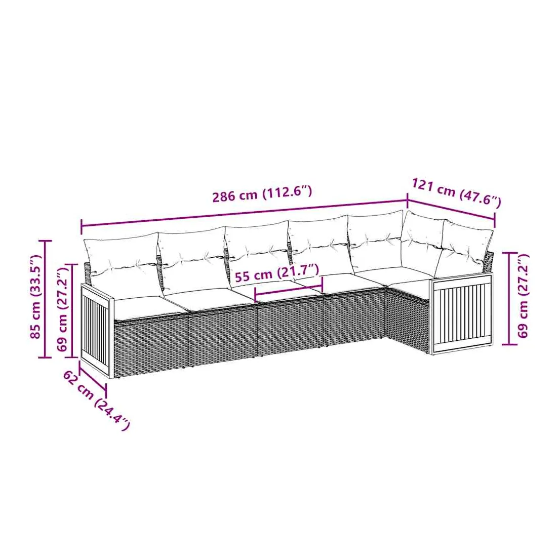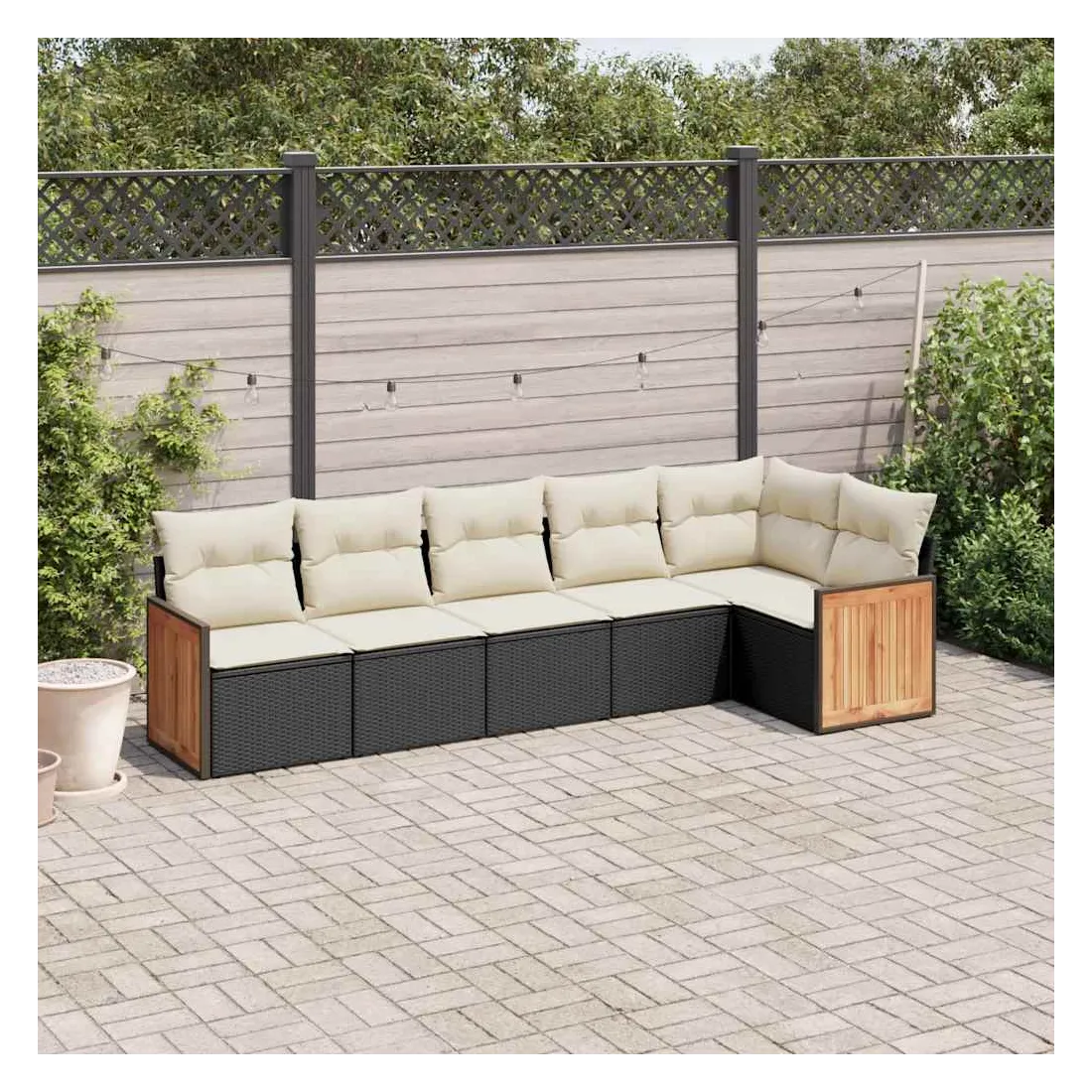 Salon de jardin 6 pcs avec coussins noir résine tressée
