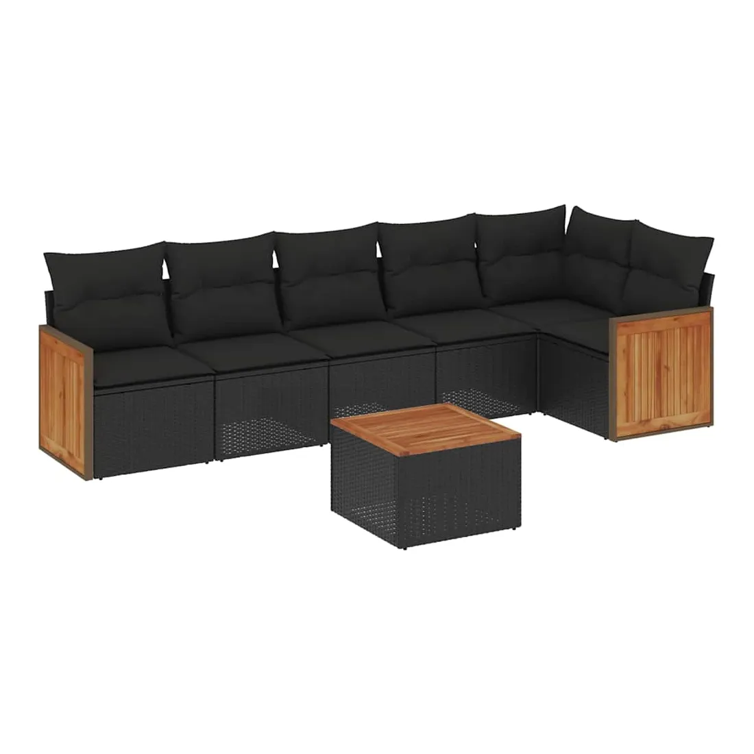 Salon de jardin 7 pcs avec coussins noir résine tressée
