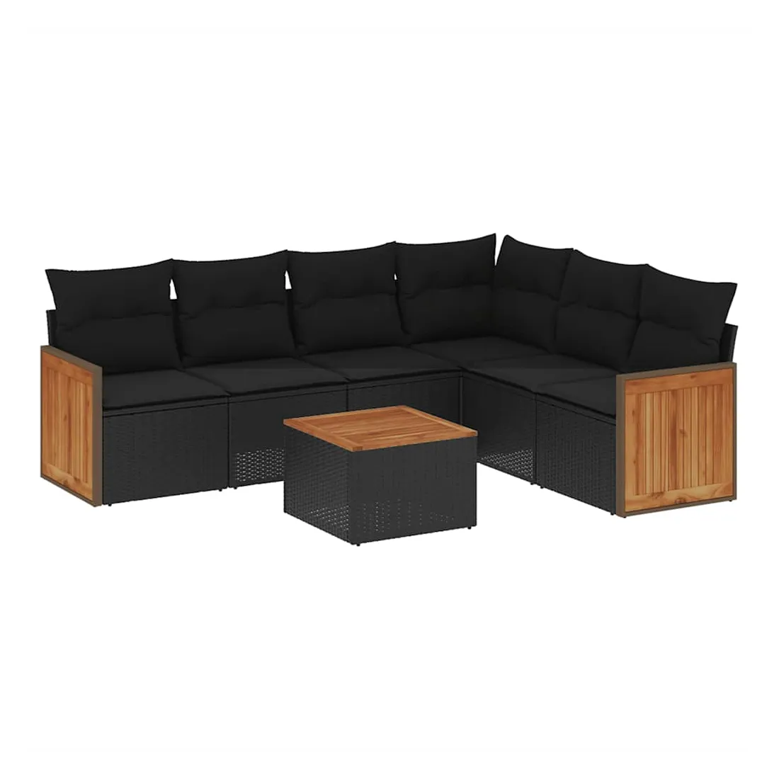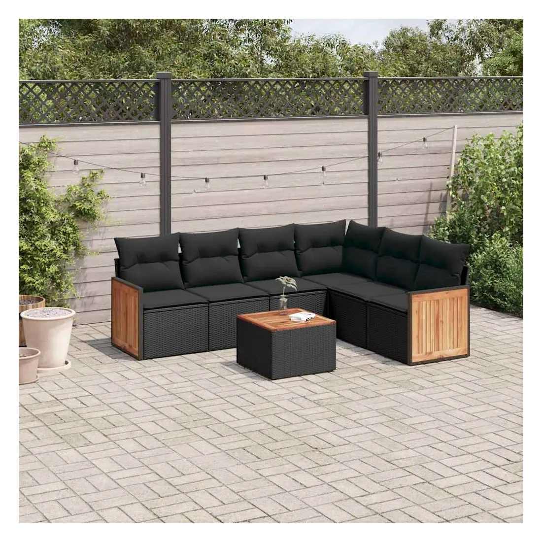 Salon de jardin 7 pcs avec coussins noir résine tressée