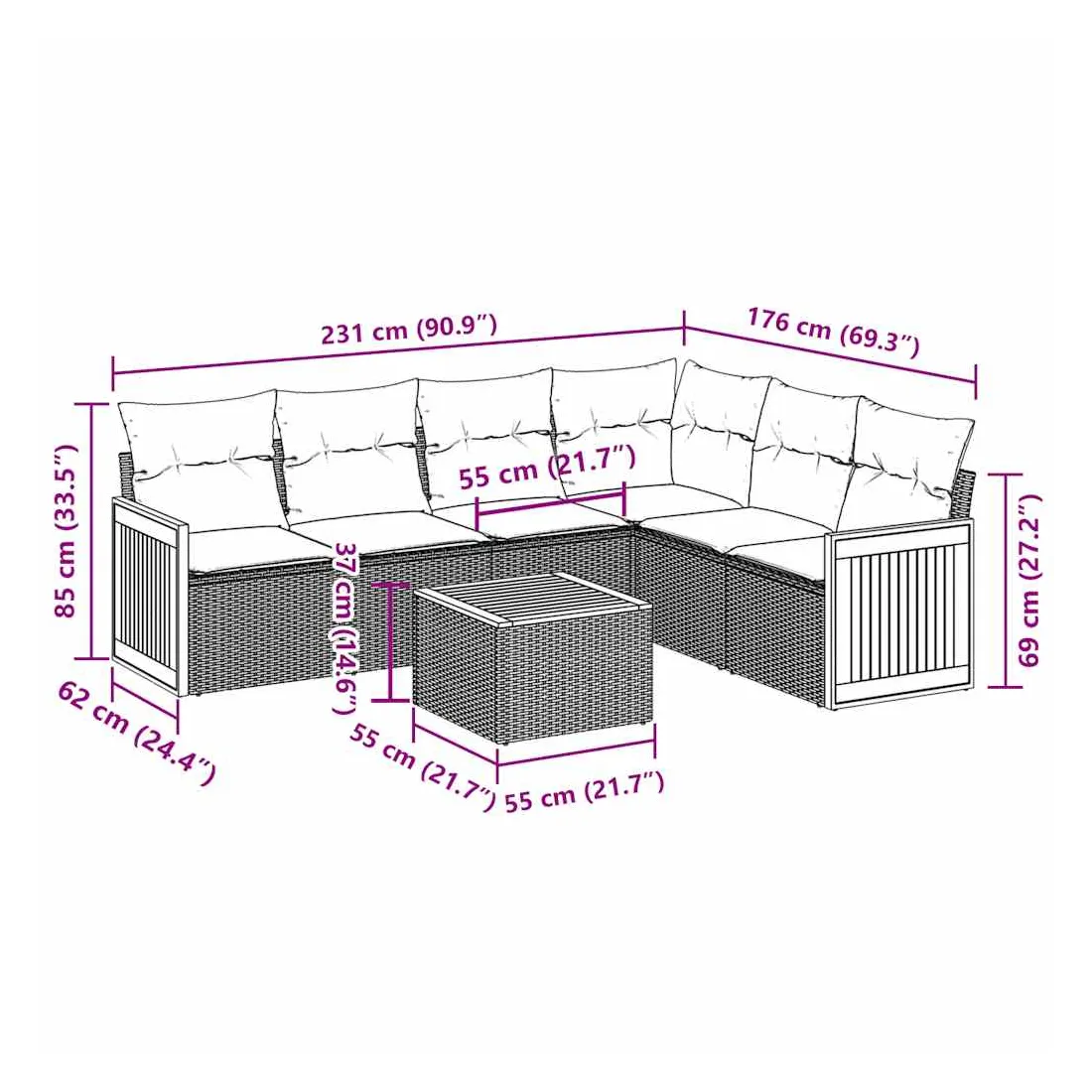 Cet ensemble de canapés de jardin est le complément parfait de votre arrière-cour, terrasse ou patio, offrant un espace confortable et accueillant pour discuter avec la famille et les amis ou simplement se détendre et profiter de l'extérieur. Matériau durable : la résine tressée, également connue sous le nom de poly rotin, est un matériau synthétique solide et nécessitant peu d'entretien qui ressemble au rotin naturel. Il est léger, facile à nettoyer et couramment utilisé pour les meubles d'extérieur en raison de sa durabilité et de ses propriétés de résistance aux intempéries.Fonction de rangement avec sac résistant à l'eau : le mobilier de jardin dispose d'un espace de rangement sous l'assise, complété par un sac résistant à l'eau pour ranger coussins, jouets et autres objets. Le sac intérieur peut être solidement fixé au mobilier d'extérieur grâce à des attaches auto-agrippantes pour plus de stabilité.Dessus stable et facile à nettoyer : cette table de jardin a un dessus en bois d'acacia robuste, durable et facile à nettoyer avec un chiffon humide.Housse amovible et lavable : ces coussins de siège sont dotés de housses amovibles pour un lavage et un entretien faciles.Conception modulaire : cet ensemble de meubles d'extérieur a une conception modulaire, ce qui le rend complètement flexible et facile à déplacer, afin que vous puissiez créer un agencement de meubles d'extérieur personnalisé. Bon à savoir :Pour que vos meubles d'extérieur restent beaux, nous vous recommandons de les protéger avec une housse imperméable.