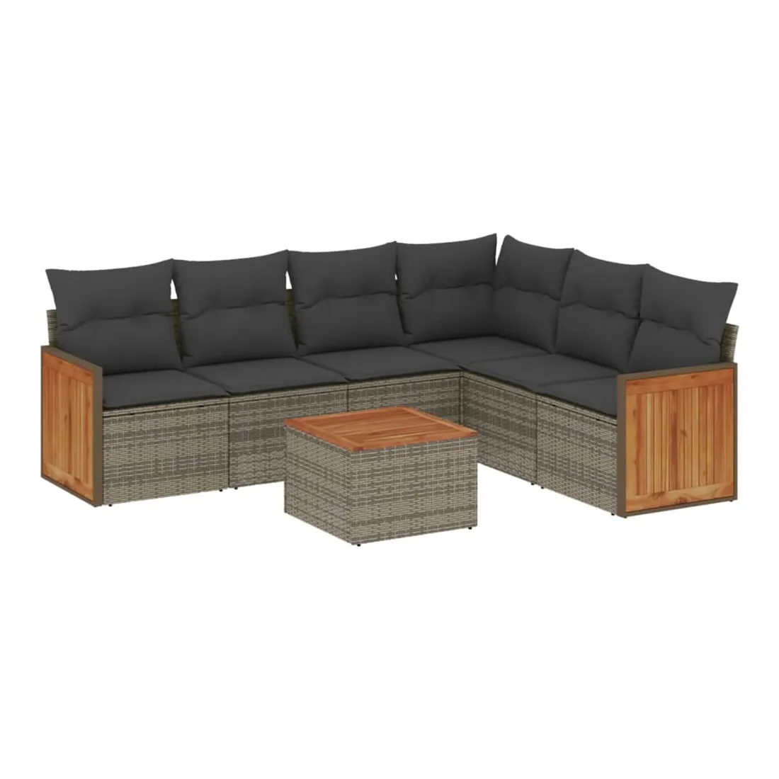Cet ensemble de canapés de jardin est le complément parfait de votre arrière-cour, terrasse ou patio, offrant un espace confortable et accueillant pour discuter avec la famille et les amis ou simplement se détendre et profiter de l'extérieur. Matériau durable : la résine tressée, également connue sous le nom de poly rotin, est un matériau synthétique solide et nécessitant peu d'entretien qui ressemble au rotin naturel. Il est léger, facile à nettoyer et couramment utilisé pour les meubles d'extérieur en raison de sa durabilité et de ses propriétés de résistance aux intempéries.Fonction de rangement avec sac résistant à l'eau : le mobilier de jardin dispose d'un espace de rangement sous l'assise, complété par un sac résistant à l'eau pour ranger coussins, jouets et autres objets. Le sac intérieur peut être solidement fixé au mobilier d'extérieur grâce à des attaches auto-agrippantes pour plus de stabilité.Dessus stable et facile à nettoyer : cette table de jardin a un dessus en bois d'acacia robuste, durable et facile à nettoyer avec un chiffon humide.Housse amovible et lavable : ces coussins de siège sont dotés de housses amovibles pour un lavage et un entretien faciles.Conception modulaire : cet ensemble de meubles d'extérieur a une conception modulaire, ce qui le rend complètement flexible et facile à déplacer, afin que vous puissiez créer un agencement de meubles d'extérieur personnalisé. Bon à savoir :Pour que vos meubles d'extérieur restent beaux, nous vous recommandons de les protéger avec une housse imperméable.