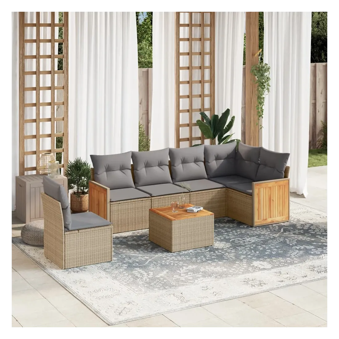 Cet ensemble de canapés de jardin est le complément parfait de votre arrière-cour, terrasse ou patio, offrant un espace confortable et accueillant pour discuter avec la famille et les amis ou simplement se détendre et profiter de l'extérieur. Matériau durable : la résine tressée, également connue sous le nom de poly rotin, est un matériau synthétique solide et nécessitant peu d'entretien qui ressemble au rotin naturel. Il est léger, facile à nettoyer et couramment utilisé pour les meubles d'extérieur en raison de sa durabilité et de ses propriétés de résistance aux intempéries.Fonction de rangement avec sac résistant à l'eau : le mobilier de jardin dispose d'un espace de rangement sous l'assise, complété par un sac résistant à l'eau pour ranger coussins, jouets et autres objets. Le sac intérieur peut être solidement fixé au mobilier d'extérieur grâce à des attaches auto-agrippantes pour plus de stabilité.Dessus stable et facile à nettoyer : cette table de jardin a un dessus en bois d'acacia robuste, durable et facile à nettoyer avec un chiffon humide.Housse amovible et lavable : ces coussins de siège sont dotés de housses amovibles pour un lavage et un entretien faciles.Conception modulaire : cet ensemble de meubles d'extérieur a une conception modulaire, ce qui le rend complètement flexible et facile à déplacer, afin que vous puissiez créer un agencement de meubles d'extérieur personnalisé. Bon à savoir :Pour que vos meubles d'extérieur restent beaux, nous vous recommandons de les protéger avec une housse imperméable.