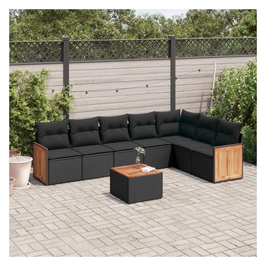 Cet ensemble de canapés de jardin est le complément parfait de votre arrière-cour, terrasse ou patio, offrant un espace confortable et accueillant pour discuter avec la famille et les amis ou simplement se détendre et profiter de l'extérieur. Matériau durable : la résine tressée, également connue sous le nom de poly rotin, est un matériau synthétique solide et nécessitant peu d'entretien qui ressemble au rotin naturel. Il est léger, facile à nettoyer et couramment utilisé pour les meubles d'extérieur en raison de sa durabilité et de ses propriétés de résistance aux intempéries.Fonction de rangement avec sac résistant à l'eau : le mobilier de jardin dispose d'un espace de rangement sous l'assise, complété par un sac résistant à l'eau pour ranger coussins, jouets et autres objets. Le sac intérieur peut être solidement fixé au mobilier d'extérieur grâce à des attaches auto-agrippantes pour plus de stabilité.Dessus stable et facile à nettoyer : cette table de jardin a un dessus en bois d'acacia robuste, durable et facile à nettoyer avec un chiffon humide.Housse amovible et lavable : ces coussins de siège sont dotés de housses amovibles pour un lavage et un entretien faciles.Conception modulaire : cet ensemble de meubles d'extérieur a une conception modulaire, ce qui le rend complètement flexible et facile à déplacer, afin que vous puissiez créer un agencement de meubles d'extérieur personnalisé. Bon à savoir :Pour que vos meubles d'extérieur restent beaux, nous vous recommandons de les protéger avec une housse imperméable.
