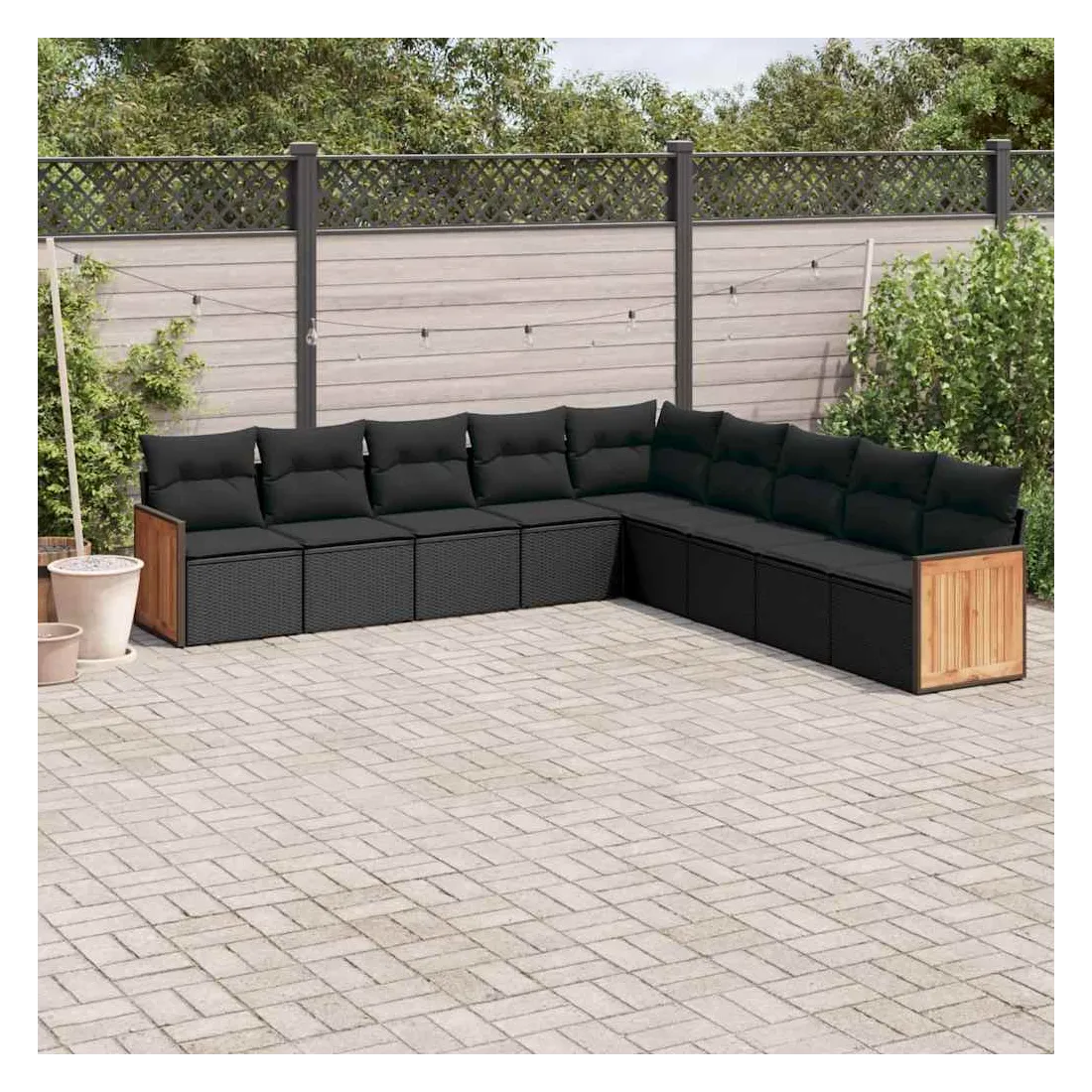 Cet ensemble de canapés de jardin est le complément parfait de votre arrière-cour, terrasse ou patio, offrant un espace confortable et accueillant pour discuter avec la famille et les amis ou simplement se détendre et profiter de l'extérieur. Matériau durable : la résine tressée, également connue sous le nom de poly rotin, est un matériau synthétique solide et nécessitant peu d'entretien qui ressemble au rotin naturel. Il est léger, facile à nettoyer et couramment utilisé pour les meubles d'extérieur en raison de sa durabilité et de ses propriétés de résistance aux intempéries.Fonction de rangement avec sac résistant à l'eau : le mobilier de jardin dispose d'un espace de rangement sous l'assise, complété par un sac résistant à l'eau pour ranger coussins, jouets et autres objets. Le sac intérieur peut être solidement fixé au mobilier d'extérieur grâce à des attaches auto-agrippantes pour plus de stabilité.Housse amovible et lavable : ces coussins de siège sont dotés de housses amovibles pour un lavage et un entretien faciles.Conception modulaire : cet ensemble de meubles d'extérieur a une conception modulaire, ce qui le rend complètement flexible et facile à déplacer, afin que vous puissiez créer un agencement de meubles d'extérieur personnalisé. Bon à savoir :Pour que vos meubles d'extérieur restent beaux, nous vous recommandons de les protéger avec une housse imperméable.
