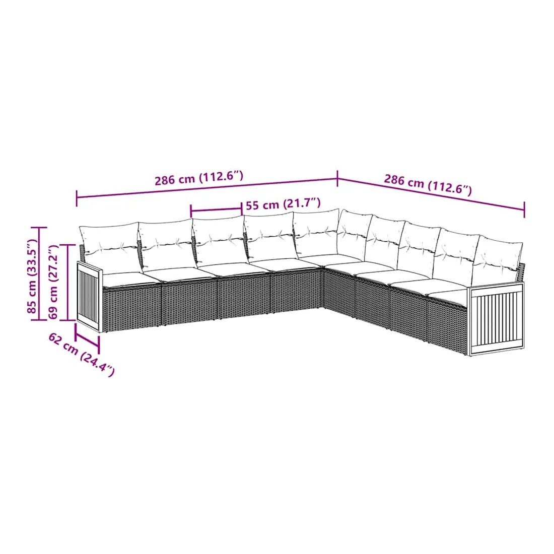 - 9 x coussin d'assise avec housse amovible et lavable