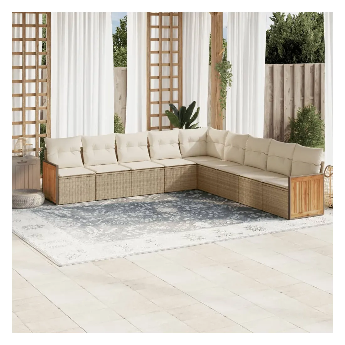 Cet ensemble de canapés de jardin est le complément parfait de votre arrière-cour, terrasse ou patio, offrant un espace confortable et accueillant pour discuter avec la famille et les amis ou simplement se détendre et profiter de l'extérieur. Matériau durable : la résine tressée, également connue sous le nom de poly rotin, est un matériau synthétique solide et nécessitant peu d'entretien qui ressemble au rotin naturel. Il est léger, facile à nettoyer et couramment utilisé pour les meubles d'extérieur en raison de sa durabilité et de ses propriétés de résistance aux intempéries.Fonction de rangement avec sac résistant à l'eau : le mobilier de jardin dispose d'un espace de rangement sous l'assise, complété par un sac résistant à l'eau pour ranger coussins, jouets et autres objets. Le sac intérieur peut être solidement fixé au mobilier d'extérieur grâce à des attaches auto-agrippantes pour plus de stabilité.Housse amovible et lavable : ces coussins de siège sont dotés de housses amovibles pour un lavage et un entretien faciles.Conception modulaire : cet ensemble de meubles d'extérieur a une conception modulaire, ce qui le rend complètement flexible et facile à déplacer, afin que vous puissiez créer un agencement de meubles d'extérieur personnalisé. Bon à savoir :Pour que vos meubles d'extérieur restent beaux, nous vous recommandons de les protéger avec une housse imperméable.