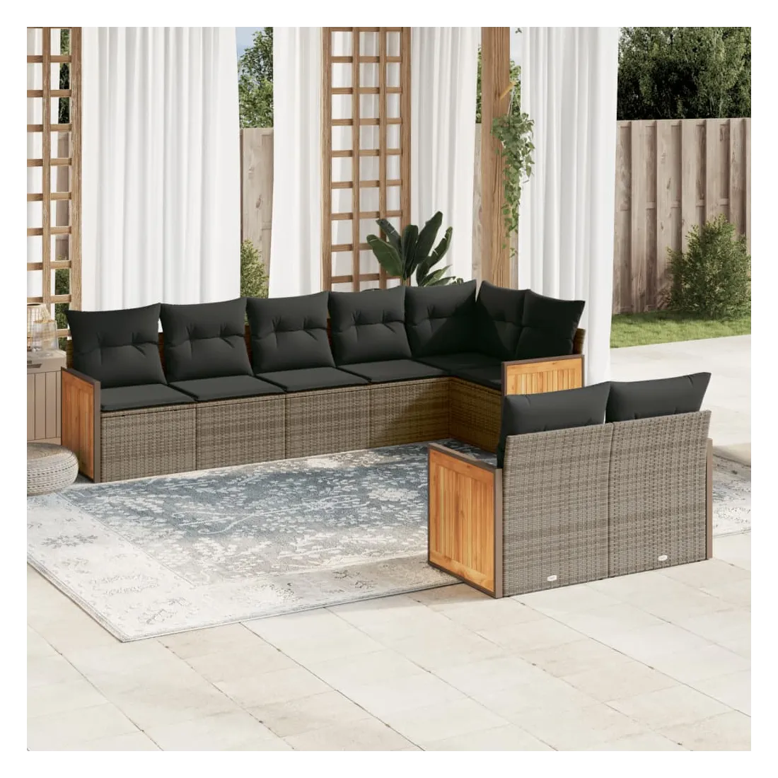 Salon de jardin 8 pcs avec coussins gris résine tressée