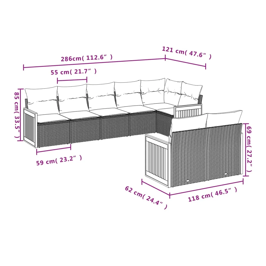 • 8 x coussin d'assise avec housse amovible et lavable