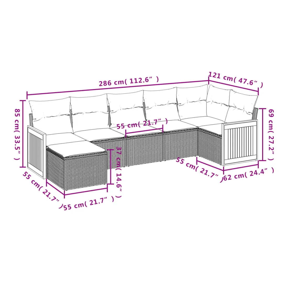 - 7 x coussin de siège avec housse amovible et lavable