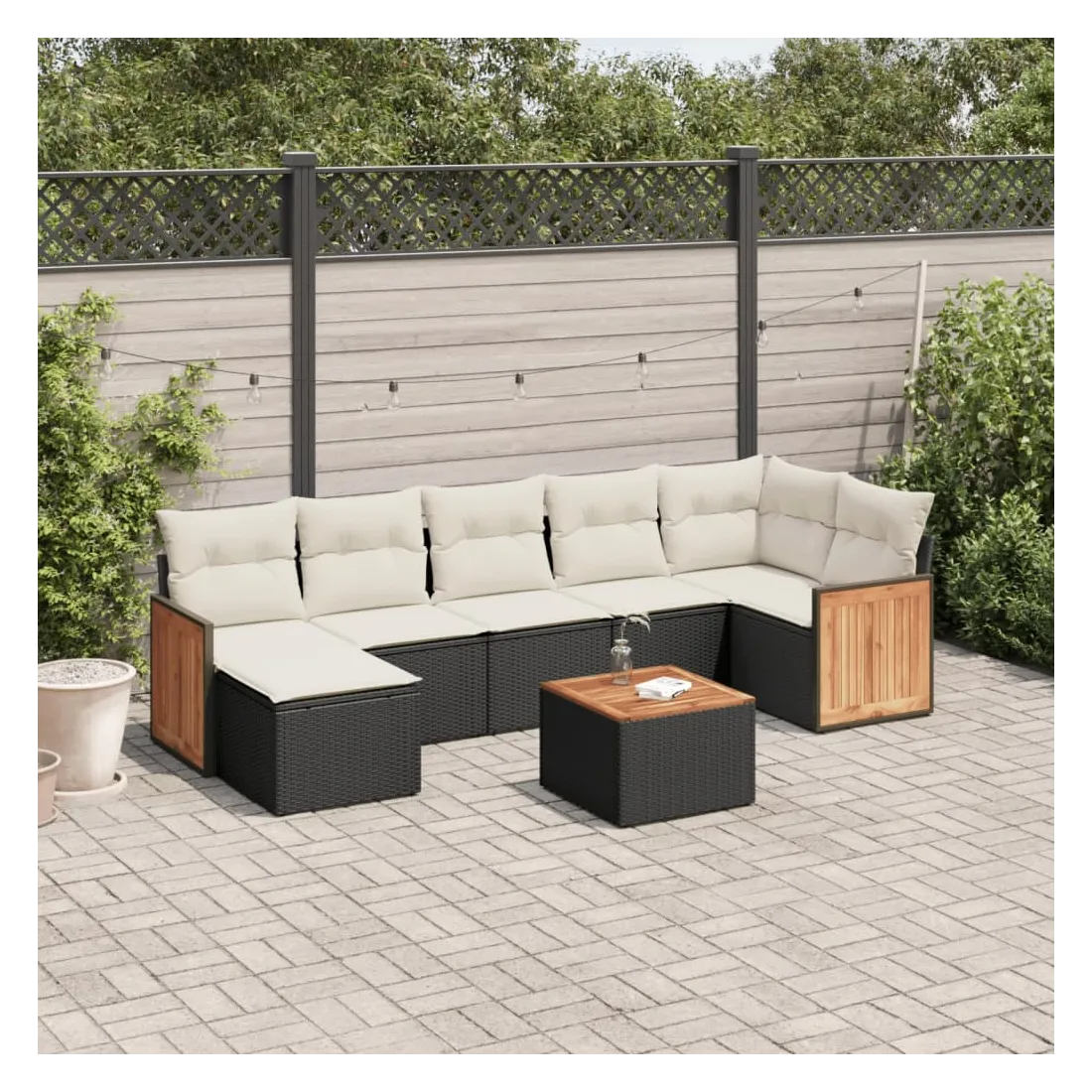 Cet ensemble de canapés de jardin est le complément parfait de votre arrière-cour, terrasse ou patio, offrant un espace confortable et accueillant pour discuter avec la famille et les amis ou simplement se détendre et profiter de l'extérieur. Matériau durable : la résine tressée, également connue sous le nom de poly rotin, est un matériau synthétique solide et nécessitant peu d'entretien qui ressemble au rotin naturel. Il est léger, facile à nettoyer et couramment utilisé pour les meubles d'extérieur en raison de sa durabilité et de ses propriétés de résistance aux intempéries.Fonction de rangement avec sac résistant à l'eau : le mobilier de jardin dispose d'un espace de rangement sous l'assise, complété par un sac résistant à l'eau pour ranger coussins, jouets et autres objets. Le sac intérieur peut être solidement fixé au mobilier d'extérieur grâce à des attaches auto-agrippantes pour plus de stabilité.Dessus stable et facile à nettoyer : cette table de jardin a un dessus en bois d'acacia robuste, durable et facile à nettoyer avec un chiffon humide.Housse amovible et lavable : ces coussins de siège sont dotés de housses amovibles pour un lavage et un entretien faciles.Conception modulaire : cet ensemble de meubles d'extérieur a une conception modulaire, ce qui le rend complètement flexible et facile à déplacer, afin que vous puissiez créer un agencement de meubles d'extérieur personnalisé. Bon à savoir :Pour que vos meubles d'extérieur restent beaux, nous vous recommandons de les protéger avec une housse imperméable.