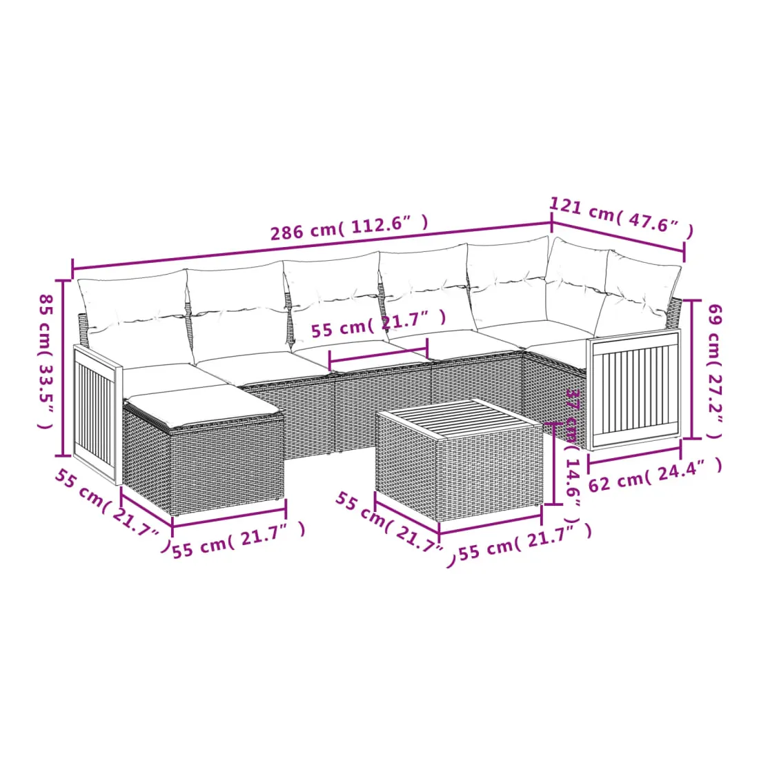 • 7 x coussin de siège avec housse amovible et lavable
