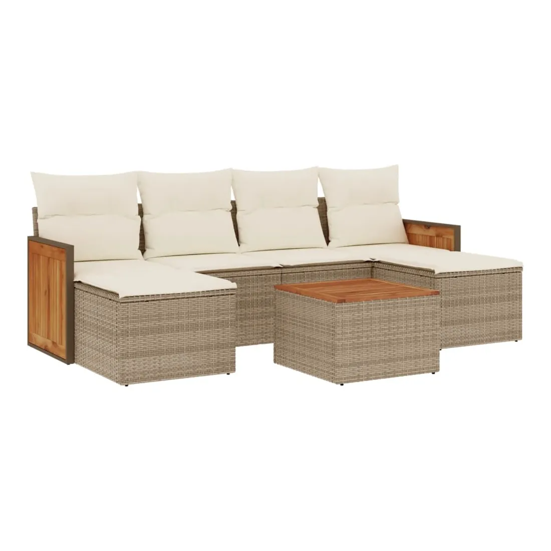 Cet ensemble de canapés de jardin est le complément parfait de votre arrière-cour, terrasse ou patio, offrant un espace confortable et accueillant pour discuter avec la famille et les amis ou simplement se détendre et profiter de l'extérieur. Matériau durable : la résine tressée, également connue sous le nom de poly rotin, est un matériau synthétique solide et nécessitant peu d'entretien qui ressemble au rotin naturel. Il est léger, facile à nettoyer et couramment utilisé pour les meubles d'extérieur en raison de sa durabilité et de ses propriétés de résistance aux intempéries.Fonction de rangement avec sac résistant à l'eau : le mobilier de jardin dispose d'un espace de rangement sous l'assise, complété par un sac résistant à l'eau pour ranger coussins, jouets et autres objets. Le sac intérieur peut être solidement fixé au mobilier d'extérieur grâce à des attaches auto-agrippantes pour plus de stabilité.Dessus stable et facile à nettoyer : cette table de jardin a un dessus en bois d'acacia robuste, durable et facile à nettoyer avec un chiffon humide.Housse amovible et lavable : ces coussins de siège sont dotés de housses amovibles pour un lavage et un entretien faciles.Conception modulaire : cet ensemble de meubles d'extérieur a une conception modulaire, ce qui le rend complètement flexible et facile à déplacer, afin que vous puissiez créer un agencement de meubles d'extérieur personnalisé. Bon à savoir :Pour que vos meubles d'extérieur restent beaux, nous vous recommandons de les protéger avec une housse imperméable.