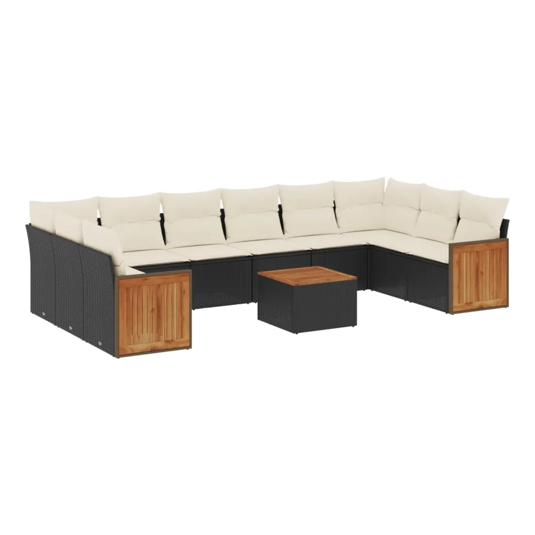 Salon de jardin 11 pcs avec coussins noir résine tressée
