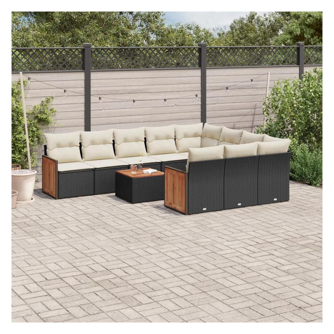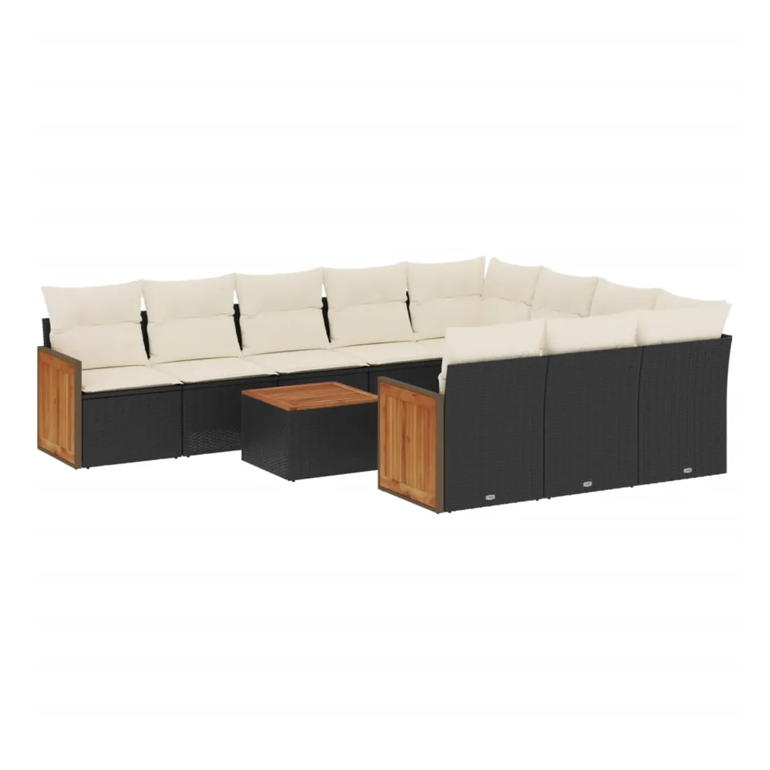 Salon de jardin 11 pcs avec coussins noir résine tressée