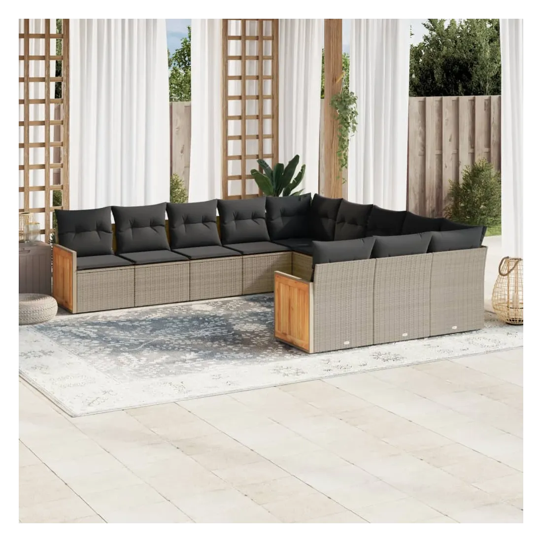 Cet ensemble de canapés de jardin est le complément parfait de votre arrière-cour, terrasse ou patio, offrant un espace confortable et accueillant pour discuter avec la famille et les amis ou simplement se détendre et profiter de l'extérieur. Matériau durable : la résine tressée, également connue sous le nom de poly rotin, est un matériau synthétique solide et nécessitant peu d'entretien qui ressemble au rotin naturel. Il est léger, facile à nettoyer et couramment utilisé pour les meubles d'extérieur en raison de sa durabilité et de ses propriétés de résistance aux intempéries.Fonction de rangement avec sac résistant à l'eau : le mobilier de jardin dispose d'un espace de rangement sous l'assise, complété par un sac résistant à l'eau pour ranger coussins, jouets et autres objets. Le sac intérieur peut être solidement fixé au mobilier d'extérieur grâce à des attaches auto-agrippantes pour plus de stabilité.Housse amovible et lavable : ces coussins de siège sont dotés de housses amovibles pour un lavage et un entretien faciles.Conception modulaire : cet ensemble de meubles d'extérieur a une conception modulaire, ce qui le rend complètement flexible et facile à déplacer, afin que vous puissiez créer un agencement de meubles d'extérieur personnalisé. Bon à savoir :Pour que vos meubles d'extérieur restent beaux, nous vous recommandons de les protéger avec une housse imperméable.